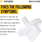 Store New Arrivals Add to Favorite View Feedback Contact Partsbroz WE01X10160 Timer Control Knob - Compatible with General Electric Washer - Replaces AP3207448 PS755794 943810 WE01X10069 WE1X10069 WE1X10070 AH755794 EA755794 Description Item model number WE01X10160 Part Number WE01X10160 Batteries Required? No Item Package Quantity 1 Color White Product Dimensions 0.4 x 5.7 x 5.7 inches Material Plastic Country of Origin China Warranty Description Limited 1-year Warranty Item Weight 0.32 ounces Manufacturer PartsBroz Batteries Included? No Special Features High-Quality Material, Easy to Install, Durable Number Of Pieces 1 Included Components WE01X10160 Timer Knob WE01X10160 Timer Control Knob - A high-quality equivalent for parts WE01X10160, AP3207448, 943810, AH755794, EA755794, PS755794, WE01X10069, WE01X10070, WE1X10069 and WE1X10070. The WE01X10160 is a highly durable product that is compatible with General Electric washers. Replacing a part in your appliance can be a simple DIY task. This product can help you to fix the following symptoms: damaged, missing, broken. Consult the appliance's manual or search online for step-by-step instructions tailored to your specific model. Prioritize your safety throughout the process. Reach out to customer support if you need further assistance. High-Quality Materials: Our replacement parts are crafted from premium materials to ensure durability and long-lasting performance, providing you with reliable solutions for your home appliances. Wide Compatibility: Designed to fit a variety of popular home appliance models, our replacement parts offer a convenient and versatile solution to keep your appliances in top working condition. Product Description Efficient WE01X10160 Knob for Reliable Settings The WE01X10160 Timer Control Knob is an essential part for restoring full functionality to your washer's timer settings. Designed for a precise fit and smooth operation, this durable replacement knob ensures effortless cycle selection, keeping your laundry routine efficient and hassle-free. High-Quality Knob for Improved Cycle Selection Made from high-quality, wear-resistant materials, the WE01X10160 Timer Control Knob is built to withstand frequent use. Its robust design ensures long-lasting reliability, making it the perfect solution for replacing a worn or damaged knob. Install PartsBroz WE01X10160 Timer Knob for Precise Washer Cycle Control Turn Off Power : Unplug the washer or disconnect the circuit breaker for safety. Remove the Old Knob : Pull off the existing knob gently or unscrew it if required. Align the New Knob : Position the WE01X10160 Timer Control Knob on the timer shaft. Secure the Knob : Push the new knob firmly into place or tighten any screws if applicable. Test the Functionality : Reconnect power and turn the knob to ensure smooth cycle selection. You may be interested in the featured items below... Add to Cart Add to Cart Add to Cart Add to Cart Add to Cart Add to Cart Add to Cart Customer Reviews 4.0 out of 5 stars 8 4.6 out of 5 stars 97 — — — 2.5 out of 5 stars 2 — Price $8.90 $ 8 . 90 $9.90 $ 9 . 90 $9.95 $ 9 . 95 $17.88 $ 17 . 88 $16.92 $ 16 . 92 $17.36 $ 17 . 36 $18.09 $ 18 . 09 Frequently bought together ✔ ✔ ✘ ✘ ✘ ✘ ✘ Upgraded ergonomics ✔ ✔ ✔ ✔ ✔ ✔ ✔ Durable material ✔ ✔ ✔ ✔ ✔ ✔ ✔ OEM standard design ✔ ✔ ✔ ✔ ✔ ✔ ✔ Full customer protection ✔ ✔ ✔ ✔ ✔ ✔ ✔ Compatible with General Electric : 51270-W0, 51270-W1, 52270-W0, 52270-W1, 52270-W2, MEX731CAS0, MEX731CAS1, WSM2700DAWWW, WSM2700HAWWW, WSM2700HBWWW, WSM2700HCWWW, WSM2700HEWWW, WSM2700HFWWW, WSM2700WAWWW, WSM2700WBWW, WSM2700WCWWW, WSM2700WDWWW, WSM2700WEWWW, WSM2780DAWWW, WSM2780DBWWW, WSM2780DC, WSM2780DW, WSM2780HAWWW, WSM2780HBWWW, WSM2780HCWWW, WSM2780HDWWW, WSM2780HFWWW, WSM2780HGWWW, WSM2780WAWWW, WSM2780WBWW, WSM2780WCWWW, WSM2780WDWWW, WSM2780WEWWW, WSM2781WBWWW, WSM2781WCWWW, WSM27TCAWW, WSM27TCAWWW, WSM27TCBWWW, WSM27TCDWW, WSM27TCDWWW, WSM27TDAWW, WSM27TDAWWW, WSM27THAWWW, WSM27THBWWW, WSM27THCWWW, WSM27THEWWW. ABOUT US We offer the best prices around on high quality products. Our E-store includes media such as books, movies, music and games while offering electronics, toys, sporting apparel, clothing, tools, general home, garden items and more. SHIPPING We are always working hard to ensure your package arrives as soon as possible. Please understand that some factors like weather, high postal traffic, and the performance of shipping companies are outside of our control. We offer free shipping to the lower 48 states and ship within 2 business days of payment, usually sooner. We do not accept P.O. Boxes. Please provide a physical address. RETURNS We offer a 30-Day Return Policy on items which you are not completely satisfied with. You have the option for a full-refund or an exchange of the item. No returns are available on items shipped outside of the USA. PAYMENT We accept PayPal. CONTACT US This page content is yet to come Please ad us to your favorite seller and visit again later Thank You CUSTOMER SATISFACTION We try our very best to make sure every customer is completely satisfied. If there's a problem, message us! We're happy to help.