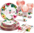 175 PCS ROSE GOLD HAWAIIAN PARTY SUPPLIES DINNERWARE SET: The package includes 25 x 9inch luau disposable dinner plates, 25 x 7inch dessert plates, 25 x 9oz paper cups, 25 x 6.5inch aloha paper napkins, 25 rose pink plastic forks, 25 knives and 25 spoons. These rose gold hawaiian luau party decorations are an excellent way to entertain guests, but also making them feel special with a treat to go home with. Durable Aloha party supplies sets allow you to SERVES 25 GUEST at one time PREMIUM QUALITY: Our rose gold hawaiian themed birthday party decorations supplies set all luau paper plates, cups and napkins are made of heavy duty paper, 100% non-toxic, which sturdy and won't fold or teared easily, perfect for cake, sandwiches, salad, fruit, etc. Disposable paper cups can withstand cold and hot drinks without worrying about leakage. Throw a memorable party with our luau decorations, “wow” your guests. NOTE: Not Microwave Safe ELEGANT & MODERN DESIGN: The tropical element and rose gold collocation design of the hawaiian party plates is very elegant & exquisite. The luau party decorations all paper plates, cups and napkins are printed with rose gold “Aloha” bronzing process while adding an vivid flamingo palm leaves patterns, which festive atmosphere t o the celebration. Along with rose pink plastic forks knives and spoons, the whole luau party supplies presents a lovely texture that adds a modern feel to your party EFFORTLEE & ENJOY YOUR PARTY: No one likes to clean up after a party, which is why we designed this rose gold plates and napkins hawaiian party supplies! Featured with disposable paper & plastic, all party plate, cups, napkin and flatware no need to clean up, you can throw them away when you clean up after an event or party. SAVE TIME AND EFFORTLEE. These aloha birthday party decorations is perfect choice for summer holiday parties. Your only job will be focused all the amazing moments in party PERFECT FOR EVERY OCCACION: Our hawaiian aloha party plates and napkins party supplies sets is perfect for almost occasion: summer beach birthday party, tropical theme party, tropical baby shower, moana birthday party, aloha birthday party, aloha baby shower, hawaiian theme birthday party, hawaiian baby shower, rose gold birthday party, summer pool party or any garden yard party even. If you are not 100% satisfied with your, feel free to send us your issues Are you tired of cleaning up the dishes after the party? The rose gold tropical boho party decorations supplies is a great choice to decorate your parties. Why you choose Tiblue Dinnerware decorations set? - Disposable dinnerware set all tropical luau paper plates, cups and napkins are composed of 100% non-toxic paper, which is safe for your family and guests. - No clean up design, all disposable paper, all plate, cups can throw them away when you clean up after an event or party. SAVE TIME AND EFFORTLEE. - Hawaiian luau party plates designed with fantastic rose gold “Aloha” bronzing process and vivid tropical patterns, perfect aloha decorations for any summer party tableware, full elegant & modern atmosphere to the celebration. VALUE PARTY SUPPLIES SET - Mix and match to create the perfect party decorations. Rose gold Aloha party decorations elevating your party setting with hawaiian dinnerware set that will complement any party theme. - Perfect for summer beach birthday party, tropical theme party, moana birthday party, aloha birthday party, rose gold hawaiian theme birthday party or any garden yard party even. PACKEGE INCLUDE: 25 X Plastic Forks 25 X Plastic Knives 25 X Plastic Spoons 25 X 9oz Paper Cups 25 x 9inch Dinner Plates 25 X 7inch Dessert Plates 25 X 6.5inch Paper Napkins NOTE: Do not microwave plates and cups please.