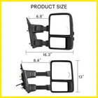 Fitment: for 2008-2016 Ford F-250 Truck Super Duty for 2008-2016 Ford F-350 Truck Super Duty for 2008-2016 Ford F-450 Truck Super Duty for 2008-2016 Ford F-550 Truck Super Duty (Temperature sensor is not included) Excludes temperature sensor. Not compatible with 11-16 models with Mirror Mount Air Temp Sensor. Features: -Sold as RH (Passenger Side) -Dual Glass (Flat Glass + Convex Glass) -Power Operated Flat Mirror -LED Arrow Signal Light Smoke -Power Heated, Manually telescoping, Manual Folding, Dual Arm -Made by ultra-strong and lightweight black durable textured ABS plastic. -Pre-installed Sturdy Studs -1 Year Warranty -Package Include: 1x Right Side Towing Mirror Note: Note: please check if your vehicle has the same functions as that of towing mirrors, such as turn signal, otherwise some functions of towing mirrors will be disabled when the vehicle does not possess the corresponding functions Shipping The shipping rates listed are only for residential or commercial destinations in the continental 48 United States. All international sales will go through eBay Global Shipping Program.Please ask us if there are any questions. We only ship the item to the address that is sent to us at the time of checkout. Please verify the correct shipping address in your PayPal account before making your payment. If we ship your item to an old or invalid address and you are not able to locate the item, we are not responsible for shipping a replacement. Currently, we do not ship to Hawaii, Alaska, Puerto Rico,APO/FPO/PO Boxes. We use USPS, UPS & FedEx as shipping method. Payments cleared before 12 PM PST, will be shipped on the same day. Payment We accept PayPal and all forms of credit card. We will only ship to the confirmed Paypal shipping address given with the payment. We do not offer local pick up service. Return 30 days Money Back Guarantee. If any package that needs to be returned, please contact our customer service first to receive a RMA form. All return items MUST be in brand new condition. About Us Specialized in aftermarket auto parts since 2012, we source and work directly with professional manufacturers to provide the highest quality parts at the most economical prices. We also has over 5 years of shipping experience with FedEx and USPS . Our packing quality is guarantee ,item shipping is timely! On Jan 9, 2025 at 03:04:07 PST, seller added the following information: