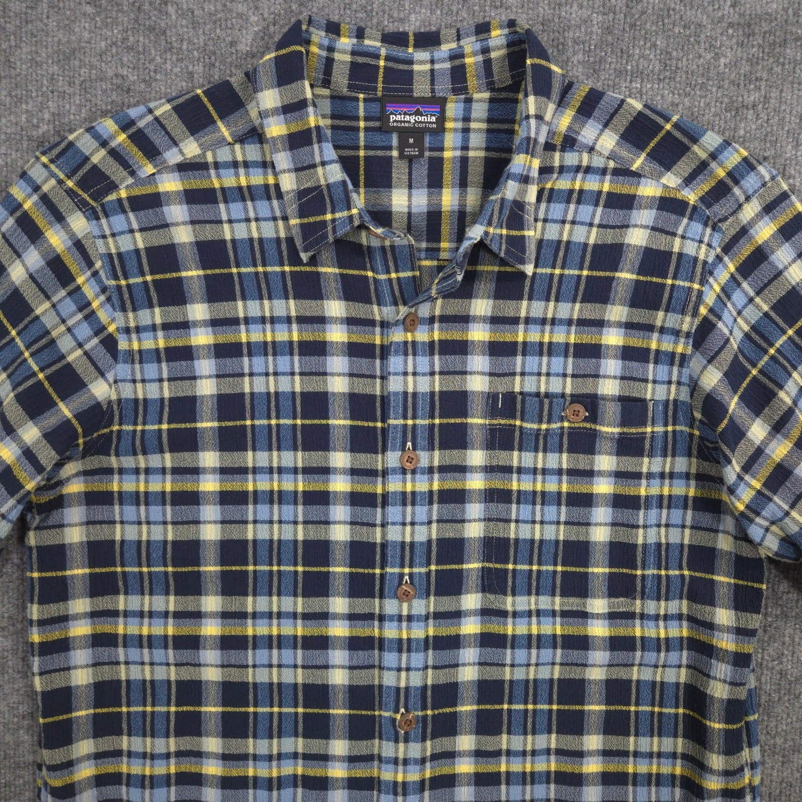 Patagonia A/C Shirt Mens M Blue Plaid Lightweight Organic Cotton Button Up Great condition. Please see photos for measurements. Sold as pictured. Thanks for looking! -Measurements are approximate, please measure and check your favorite items at home to estimate fit -100% authenticity guaranteed -Items typically ship next business day