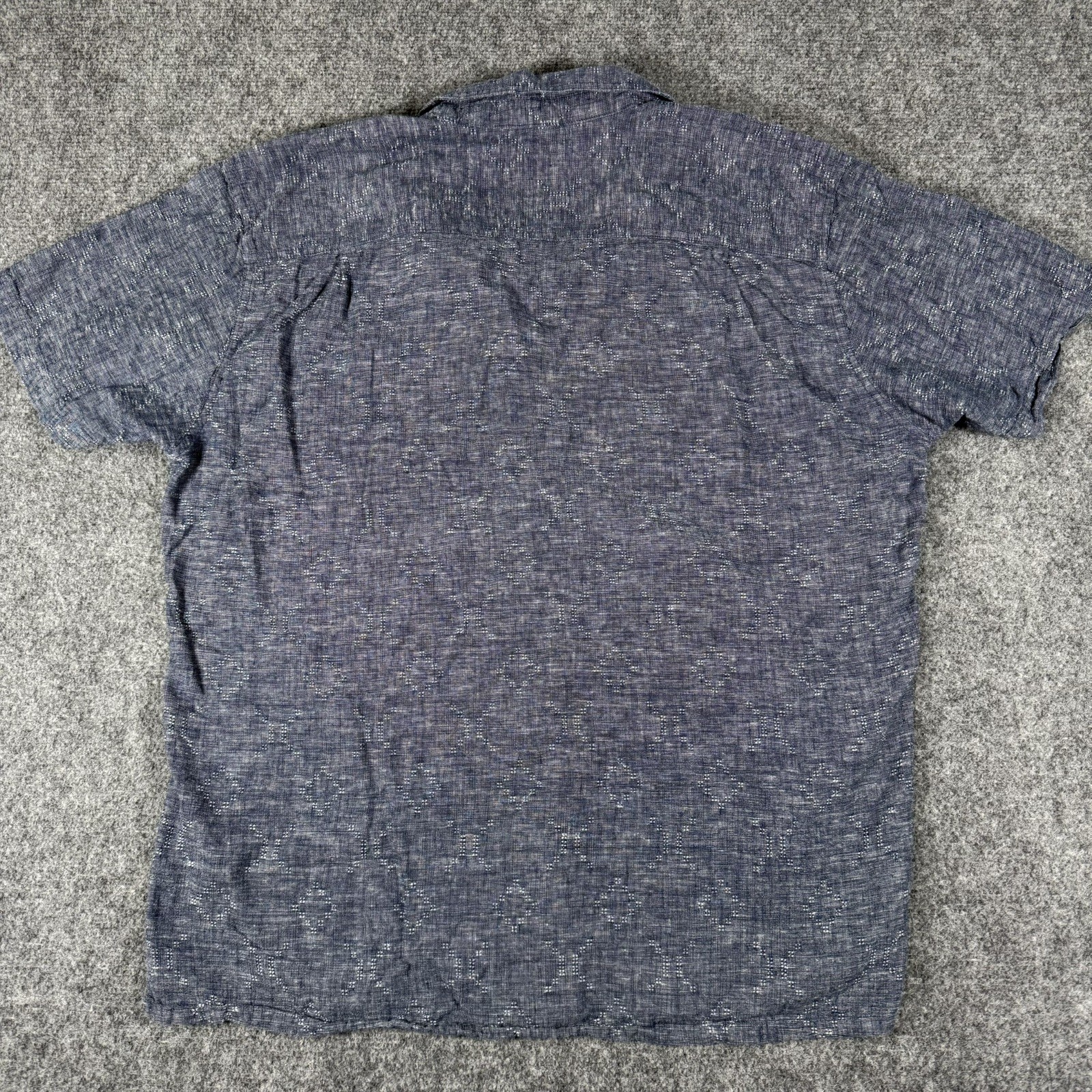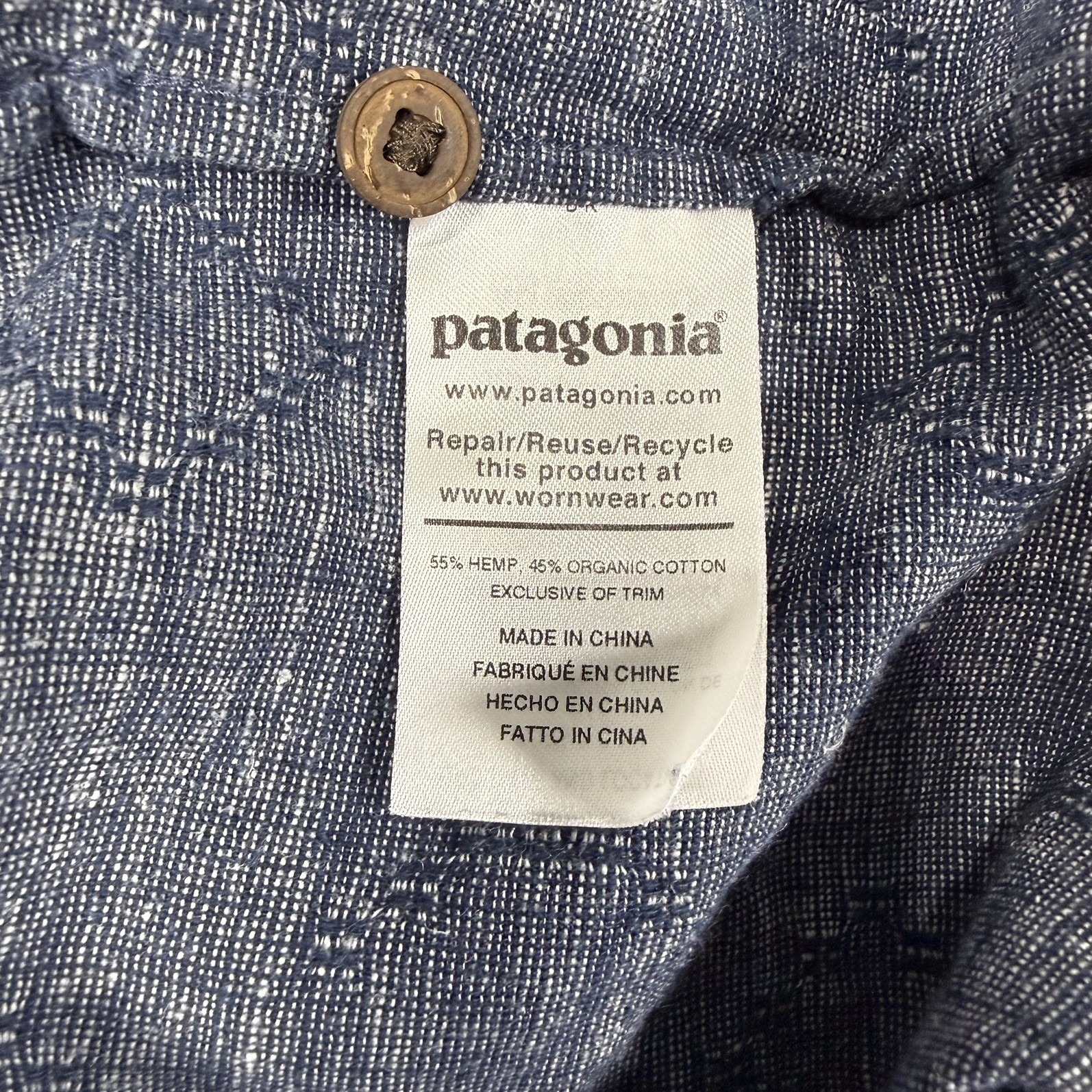 Patagonia Hemp & Organic Cotton Back Step Shirt This lightweight, breathable button-up is crafted from a durable hemp and organic cotton blend, making it perfect for warm weather. It features a textured airy weave and coconut buttons. Item Specifics Brand: Patagonia Size: XL Style: Back Step Shirt (53139) Material: 55% Hemp, 45% Organic Cotton Color: Blue / Grey (Textured) Features: Coconut buttons, two chest pockets, vented hem. Condition Report Pre-owned. This item is in good used condition. There are no rips, holes, or significant stains noted. Fabric shows normal, gentle wear typical of hemp blends. Please review all photos for exact details on texture and condition. *Item color may vary slightly due to lighting and screen settings.*