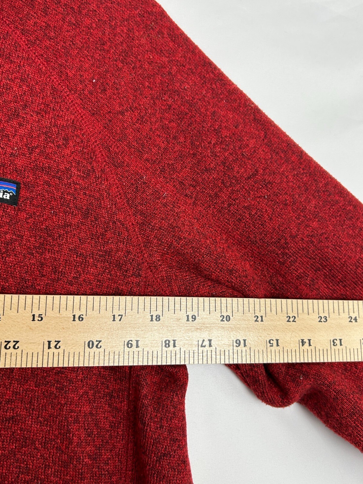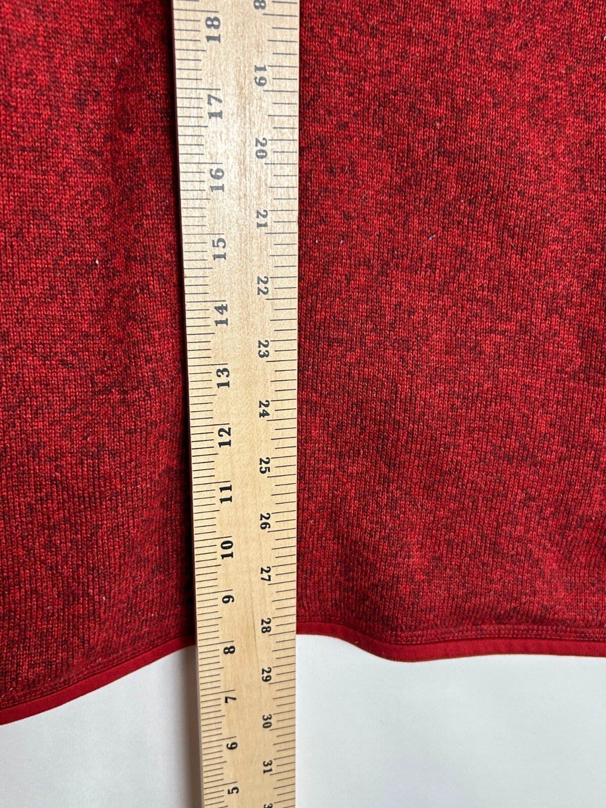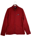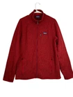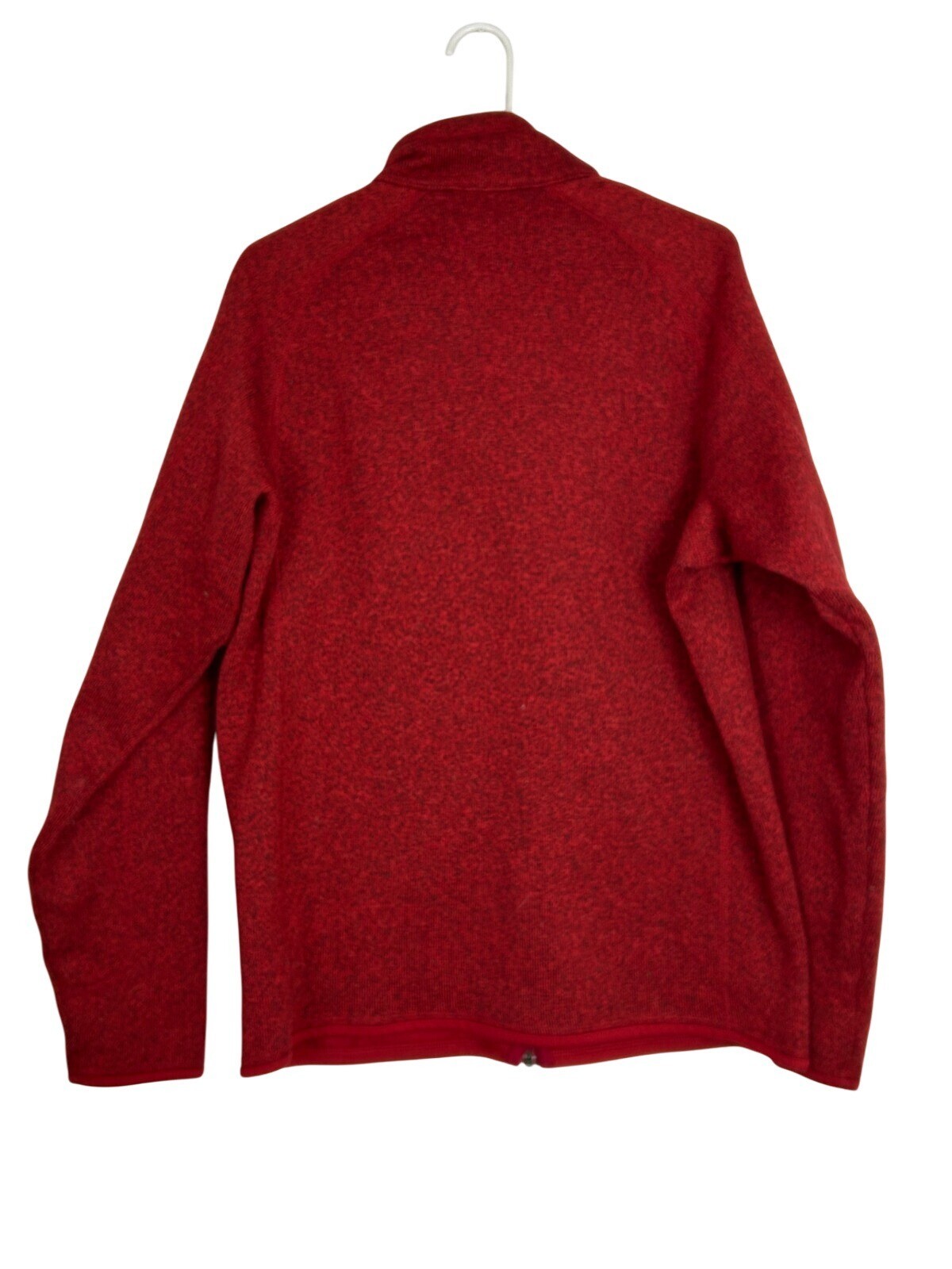 The Patagonia Better Sweater Fleece Jacket in red is a men's size large full zip jacket made of polyester fleece. It features a stand-up collar, military-style design, and is suitable for outdoor activities like walking and hiking. With a regular fit and lightweight construction, this jacket is perfect for winter, fall, and spring seasons. The jacket also includes convenient pockets and is machine washable for easy care. Made by the reputable brand Patagonia, this Better Sweater jacket is a versatile and stylish choice for casual or travel occasions.