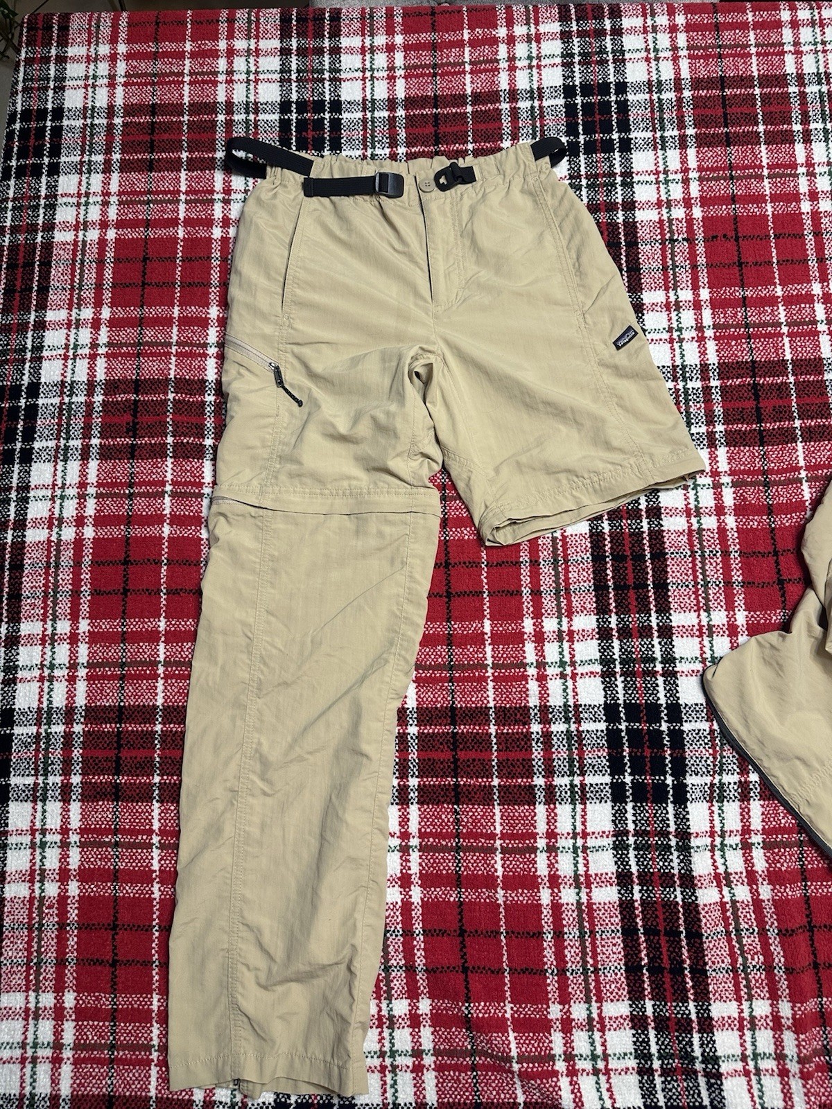 The Patagonia Men's Gi III Zip-Off Pants in Khaki XS are a versatile and stylish choice for travel and casual occasions. Made of durable nylon material, these pants feature a solid pattern with a zip closure and a straight leg design. The beige color and logo accents add a touch of style, while the slash pocket and flat front give them a classic look. With a 32-inch inseam and regular fit, these pants are perfect for the warmer seasons of summer, fall, and spring. Easy to care for with machine washable instructions, these pants are a convenient and reliable option for any outdoor adventure.