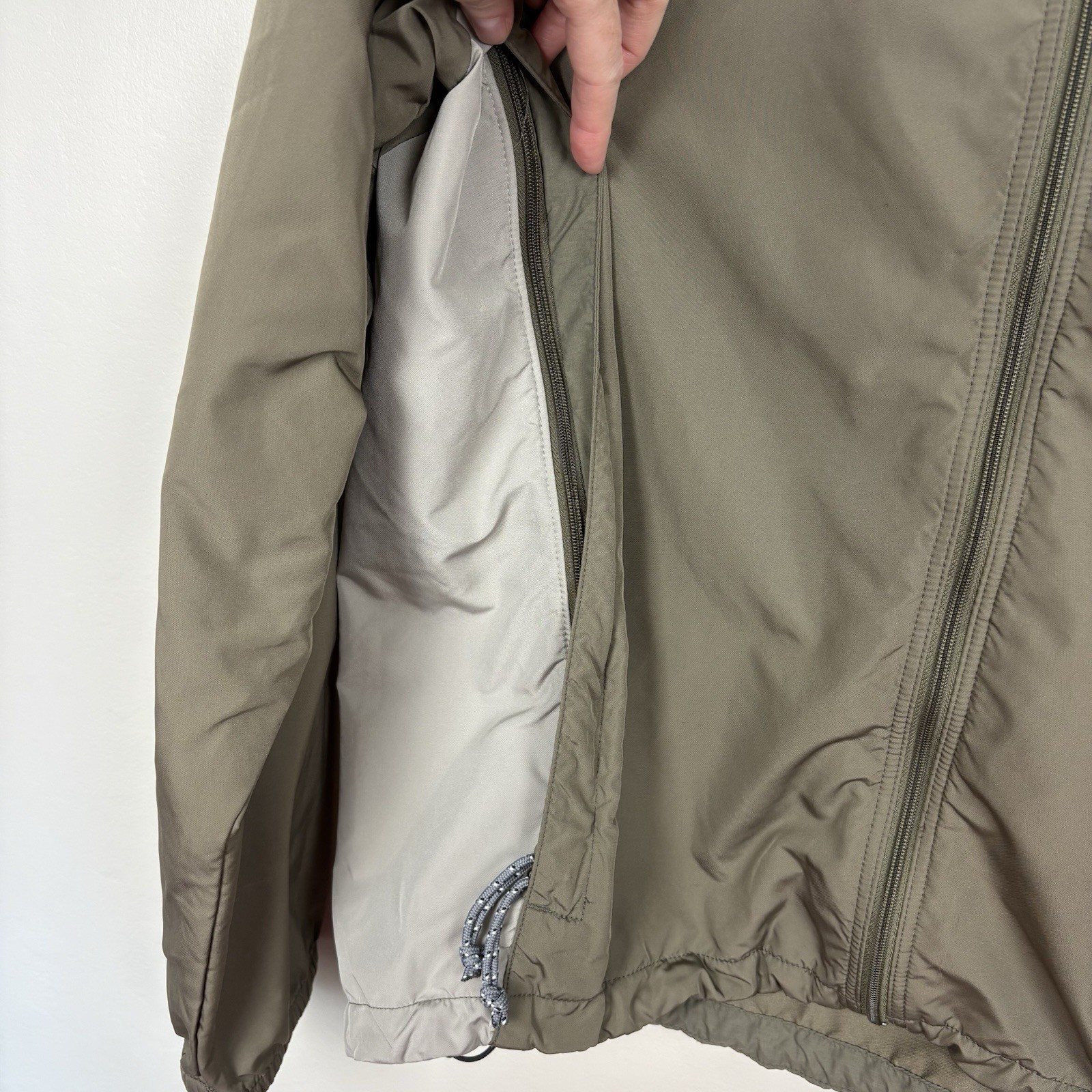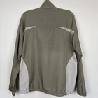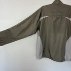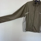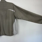 Full zip-front jacket has fleece-lined collar, very large zippered pockets/vents on each side with bungee cords. Waist also has bungee cords with toggles so you cinch the bottom of the jacket to your comfort level. Long sleeves have elasticized cuffs. Colors are light gray and green. SIZE: Large COLOR: Green, Gray MATERIAL CONTENT: 100% polyester STYLE: 84500 COO: China CARE: Machine wash CONDITION: Good pre-owned condition with no fading, pilling, or holes/tears. There are some discolored areas, most noticeably on the arms and back. There are also a few spots on the front. Please see photos for details. FLAT MEASUREMENTS (approximate) Underarm to Underarm: 23" Shoulder to Hem: 27" Sleeve Length: 34" from neck If you have any questions, please don’t hesitate to ask. Thanks for viewing our listing! 90's, Y2K, outdoors, rugged, lightweight, camping