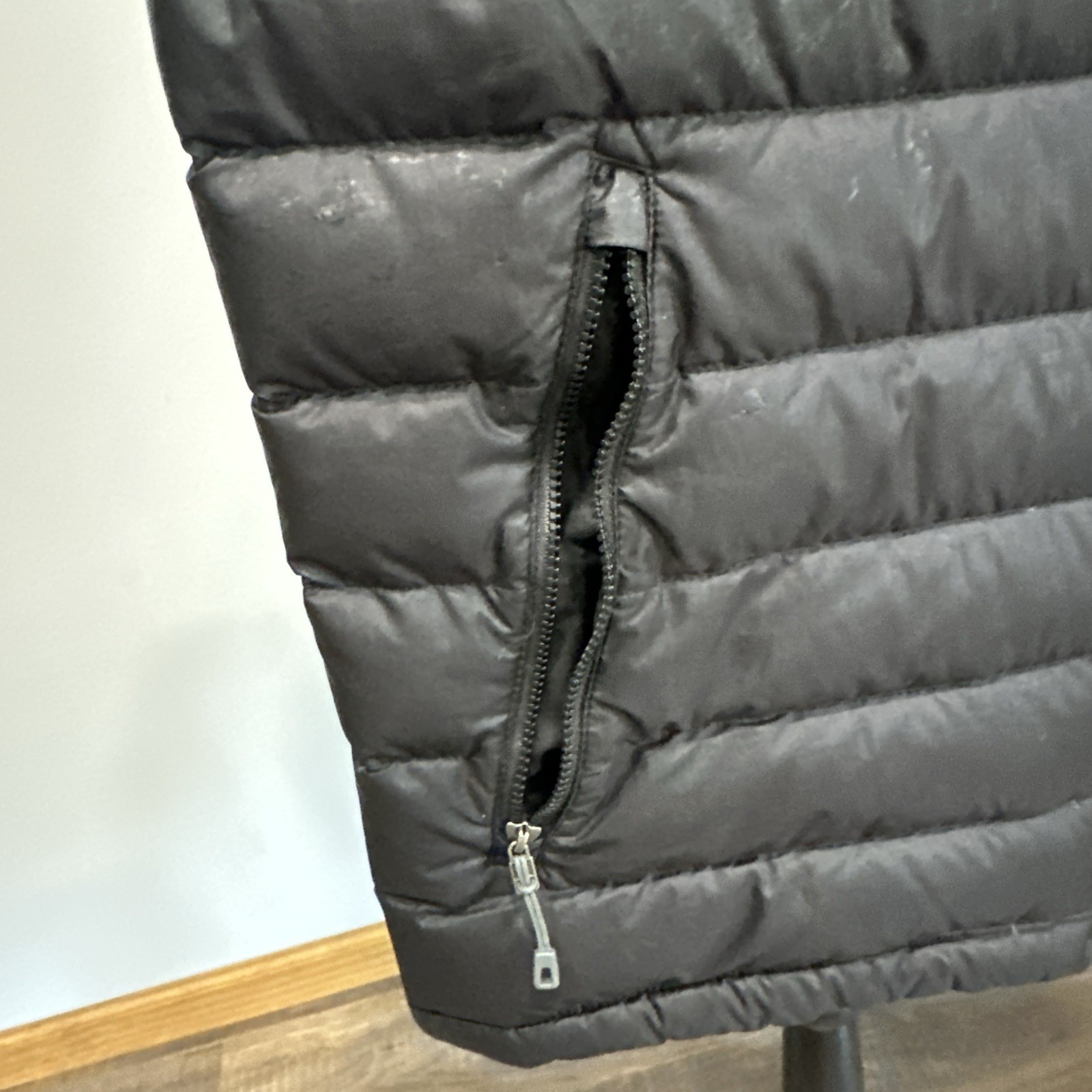 The Patagonia Goose Down Sweater Vest in black is a versatile and stylish garment perfect for various occasions. This puffer vest features a full zip closure, stand-up collar, and zipper pockets for added convenience. Made with polyester outer shell material and polyester lining, it is insulated with goose down to provide warmth during the winter, fall, and spring seasons. The lightweight and packable design make it easy to carry and wear, while the water-resistant and wind-resistant features ensure protection against the elements. Perfect for outdoor activities like skiing, running, and hiking, this vest from the Patagonia Down Sweater product line is a practical and fashionable choice for men. New without tags. Never worn.