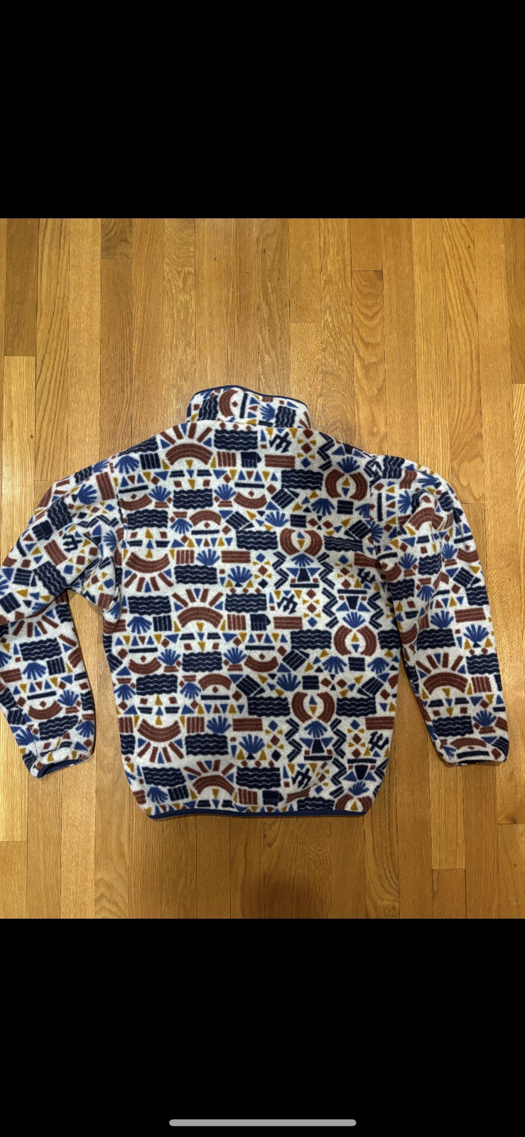 Patagonia Synchilla snap t fleece in “Protected Peaks” design and men’s size small. Hard to find print from Fall 2019, but overall a Beautiful design with fantastic colorway combination of off-white, brown, and navy blue. Unisex or mens size small, good condition, but feel free to message me any questions :) Length: 26 in Pit to pit: 22 in Sleeve: 23.5 in #patagonia #granola #gorpcore #hiking #y2k