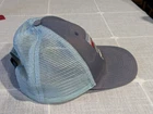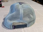 This one has a bit of sun. Fade on it. As you can see on the front of the hat you can see some orangish streaks. It is faint but it is there and I need to mention it. If you have any questions please ask. This is a Patagonia Netplus Organic Cotton Cap Hat with a mesh back and snapback closure. It is designed for outdoor enthusiasts and travelers, featuring a breathable and adjustable design. The hat is made of cotton canvas material in a solid blue color with the Patagonia logo. It is suitable for both men and women in one size fits all. Perfect for all seasons, this hat is a stylish and practical choice for casual wear.