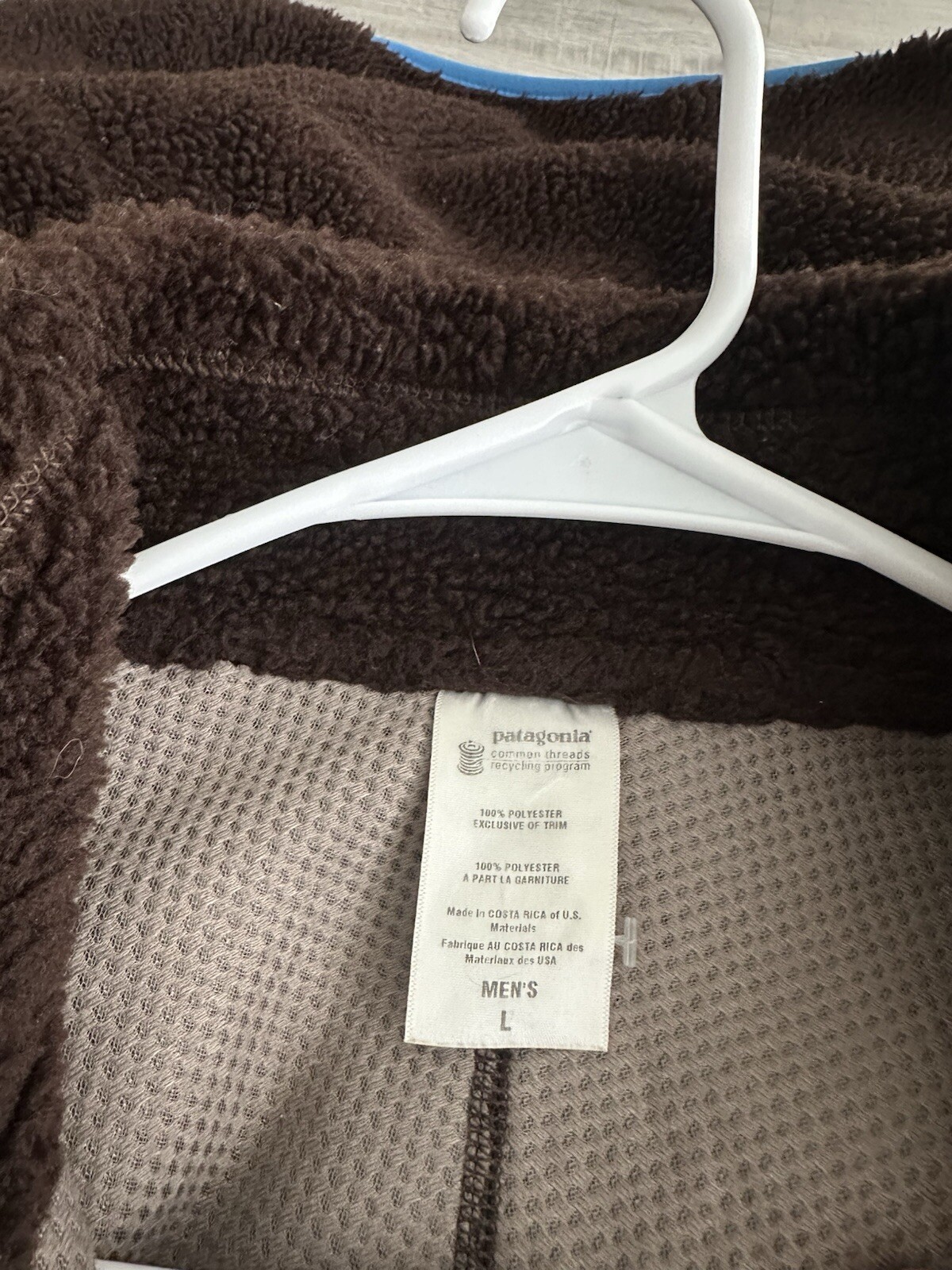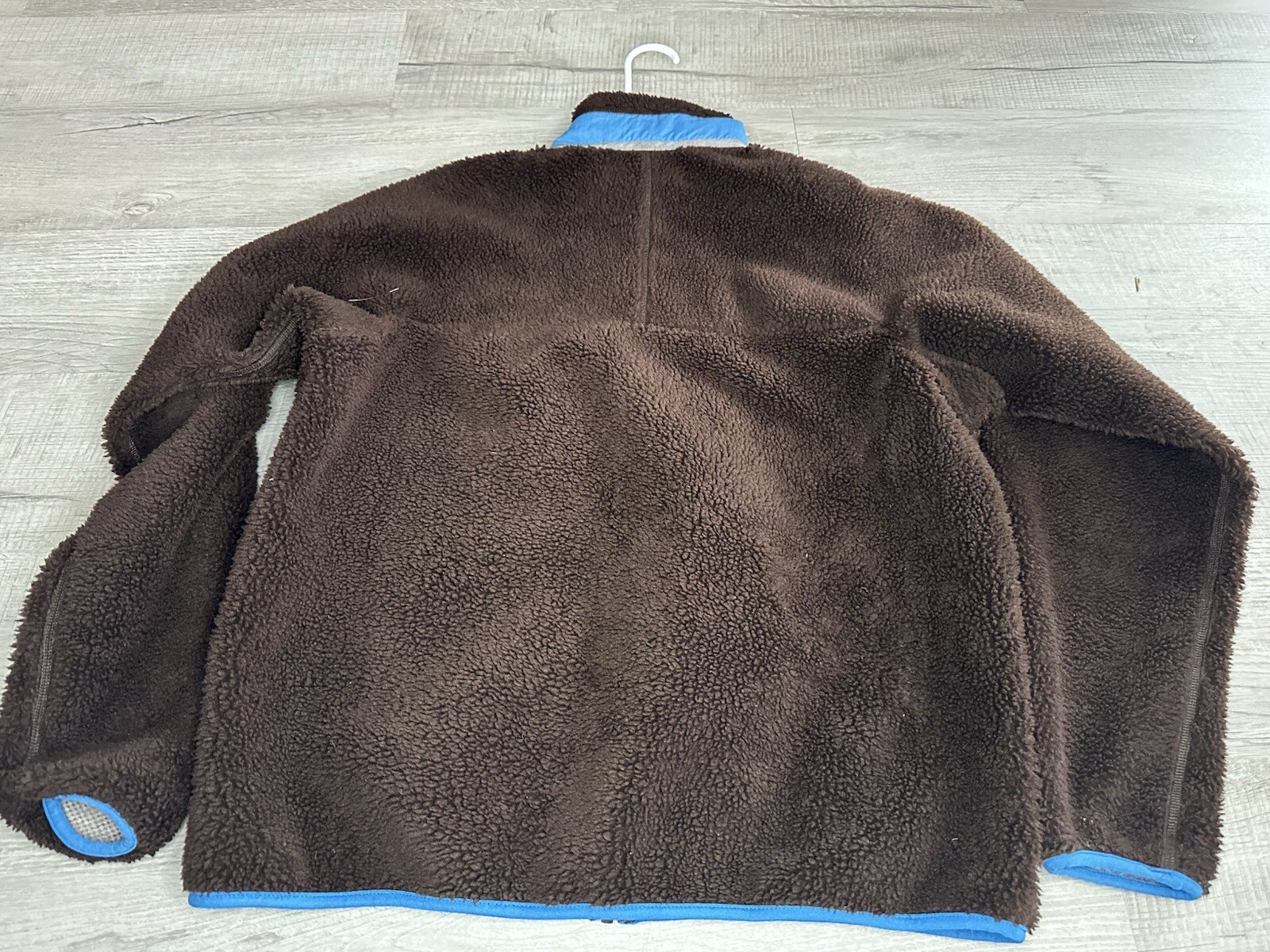 Elevate your outdoor style with this classic Patagonia Retro-X jacket. Made from polyester fleece material, this dark brown jacket features a full zip closure, zipped pockets, and pockets for added convenience. The vintage jacket is perfect for travel and casual occasions, and its regular fit is suitable for all body types. The Patagonia Retro-X jacket is perfect for walking and hiking, and its accents, including a zipper, add a touch of nature and classic style to your outfit. The solid pattern and retro 90s theme make it a must-have for any outdoor enthusiast. Whether you're heading for a walk in the park or hiking a mountain trail, this jacket is sure to keep you warm and comfortable. Men’s large