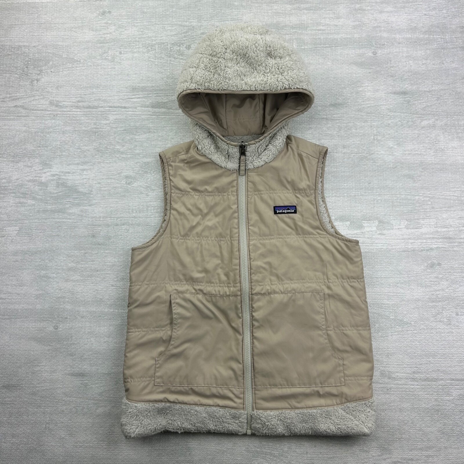 Patagonia Sherpa Vest Jacket Size Medium Cream Reversible Hooded Quilted Boho