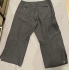 The product is a pair of Patagonia women's hiking pants in a size 32. These capri pants feature a solid dark gray color with a mid-rise and flat front design. Made from stretch material, they have a zip closure and cargo pockets for convenience. Perfect for casual or outdoor occasions, these athletic fit pants are machine washable and 22 inches in inseam. The brand's reputation for quality and outdoor-themed style makes these pants a reliable choice for any adventure.