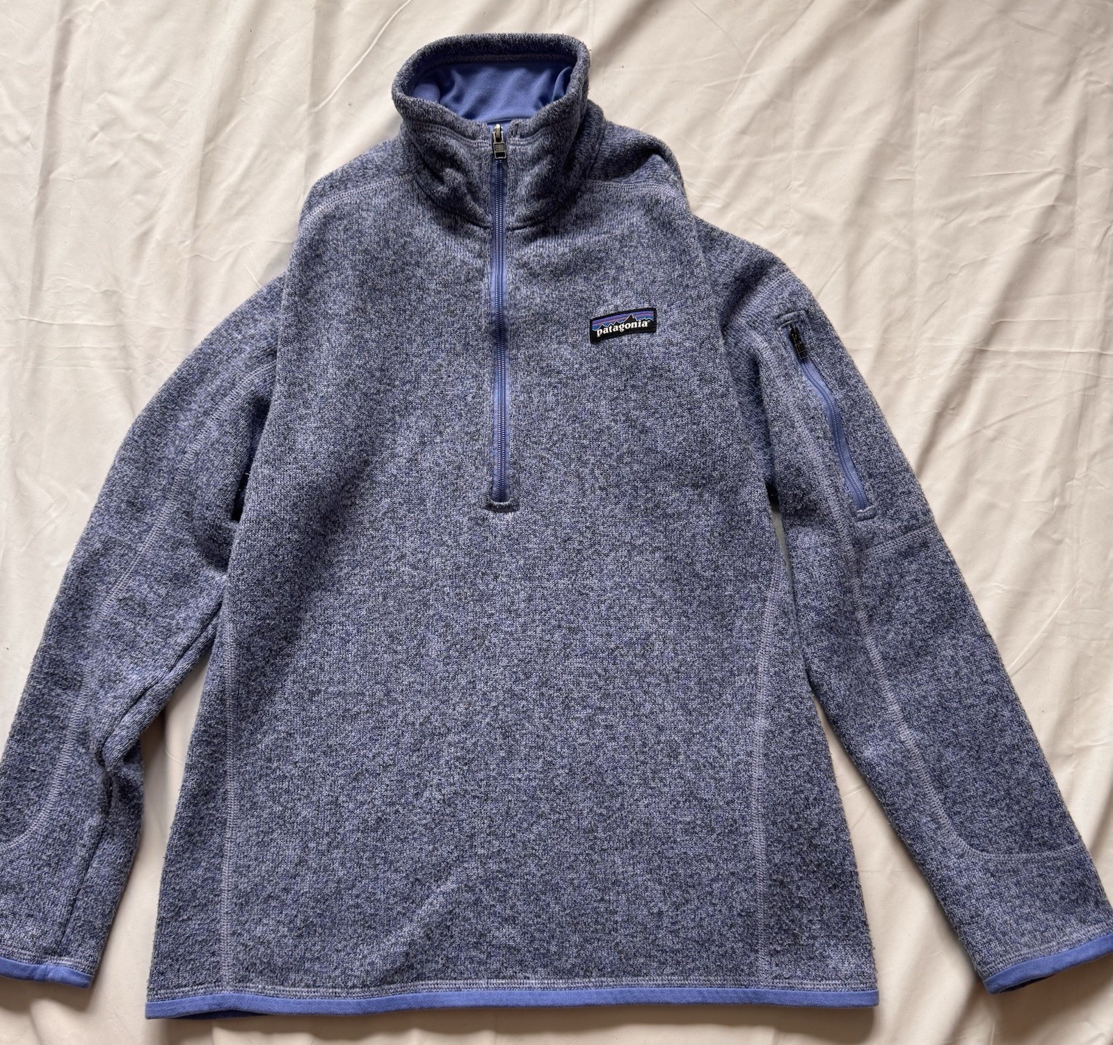 The Patagonia Women's Better Sweater 1/4 Zip Fleece in size small is a stylish and functional basic jacket perfect for casual occasions during the winter, fall, and spring seasons. Made of polyester fleece with a 1/4 zip closure, this mid-length jacket features long sleeves and a solid blue color. The regular fit and machine washable care make it convenient and easy to maintain. This outdoor-themed jacket from the reputable brand Patagonia combines quality insulation with a classic design, making it a versatile addition to any wardrobe.