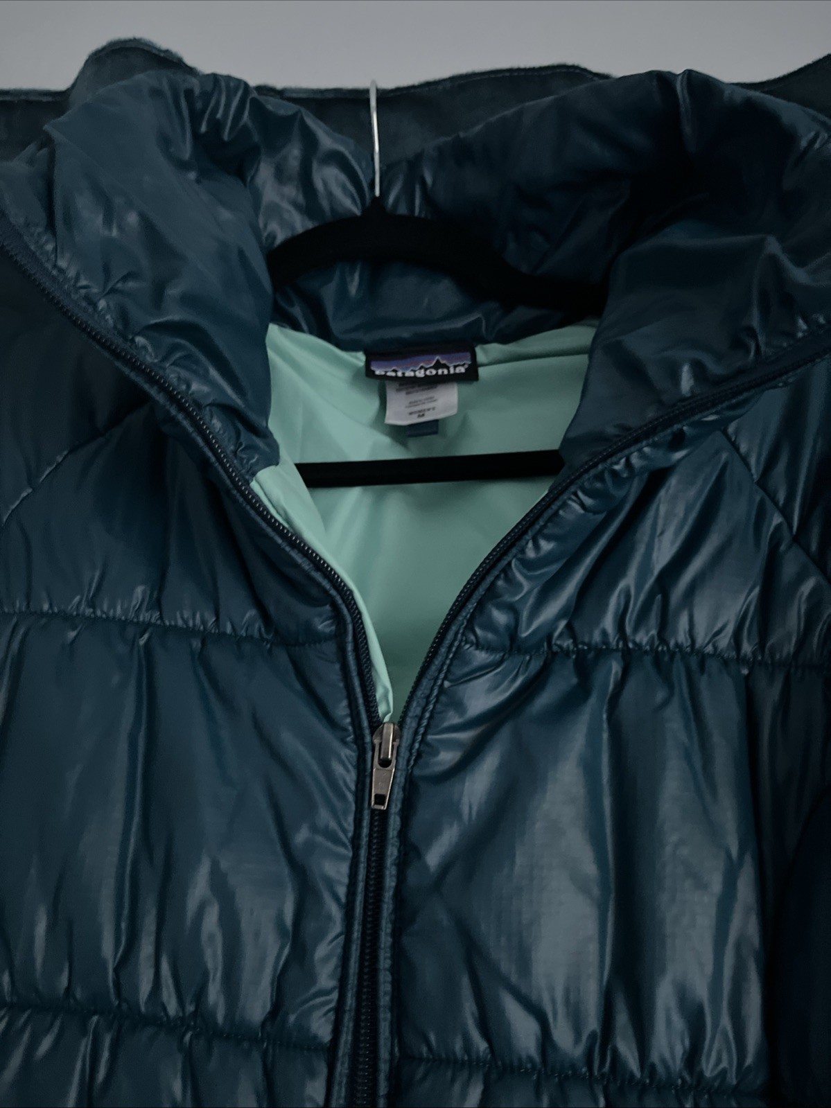 The Patagonia Women's Long Puffer Jacket in size Medium is a stylish and functional outerwear piece for the winter and fall seasons. Made with a softshell polyester outer shell and warm down insulation, this teal jacket features a full zip closure and a regular fit for comfort. Perfect for travel and casual occasions, it is machine washable for easy care. The outdoor-themed puffer jacket from the trusted brand Patagonia is a versatile and practical addition to any woman's wardrobe. See photos for snag on the back arm sleeve. Cosmetics flaws that won’t affect warmth or wearability. Had skin zipper pockets flush with coat and one is a hidden inside pockets.