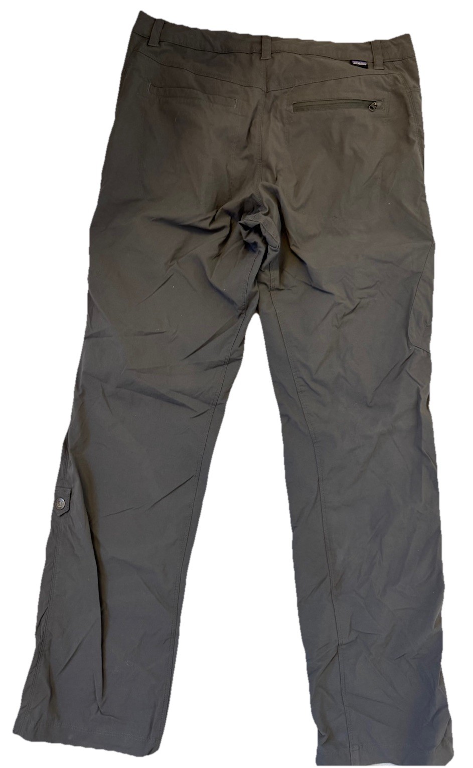 **Note stitching in pictures attached These multifunctional hiking pants are designed for comfort and unconstrained movement, with a mid rise and a sleek, modernized fit to move with you. They're built of 96% NetPlus® postconsumer recycled nylon made from recycled fishing nets to help reduce ocean plastic pollution/4% spandex plain weave; with a durable water repellent (DWR) finish made without intentionally added PFAS to shed light moisture, and 40+ UPF sun protection. A roll-up cord and a button fastener on each pant leg boosts versatility.
