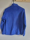 The Vintage Patagonia Deep Pile Fleece Jacket in XS Blue is a classic mid-length jacket with a 1/2 zip closure for easy layering. Made of polyester fleece fabric, it is perfect for outdoor and casual occasions during the winter, fall, and spring seasons. The retro-themed jacket features a solid blue color, long sleeves, and regular fit, making it a stylish and comfortable choice for women looking for a vintage-inspired piece from the trusted brand Patagonia. Machine washable for easy care, this fleece jacket is a timeless addition to any wardrobe.