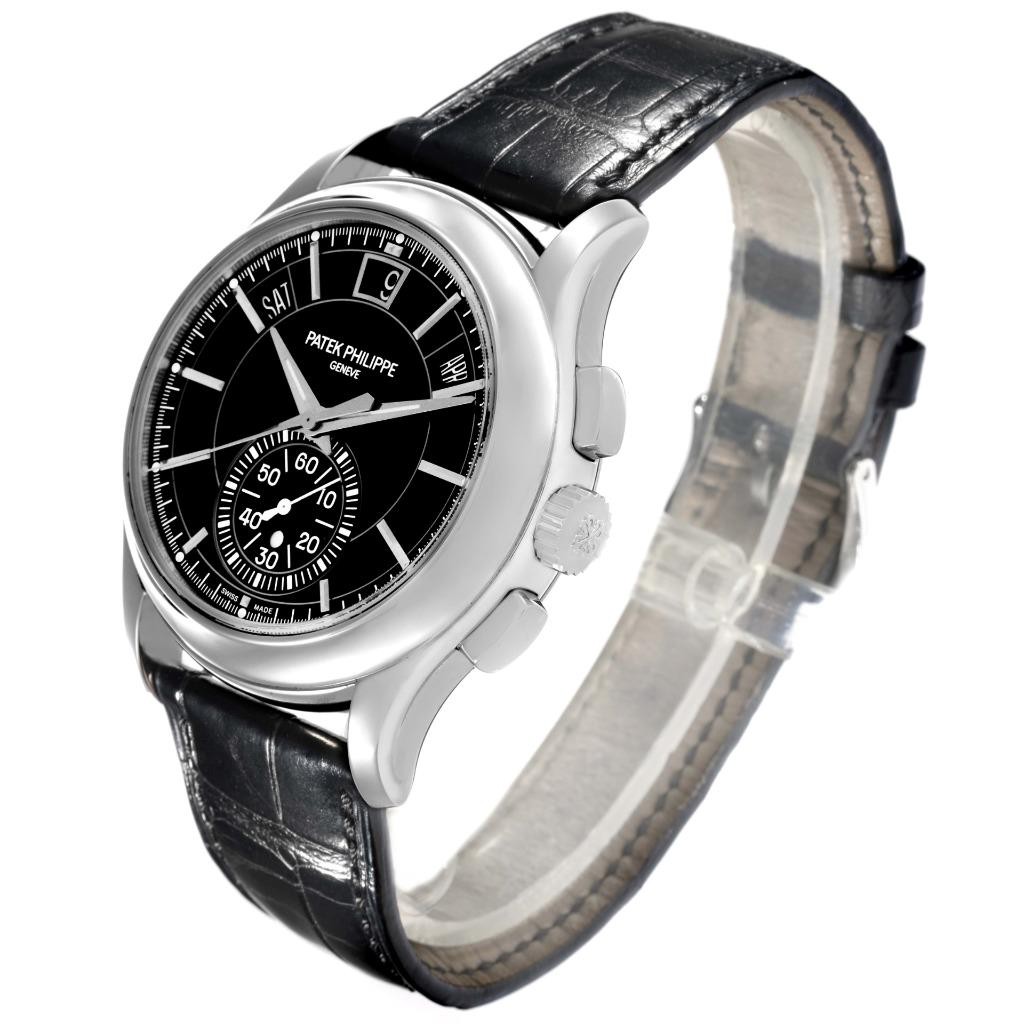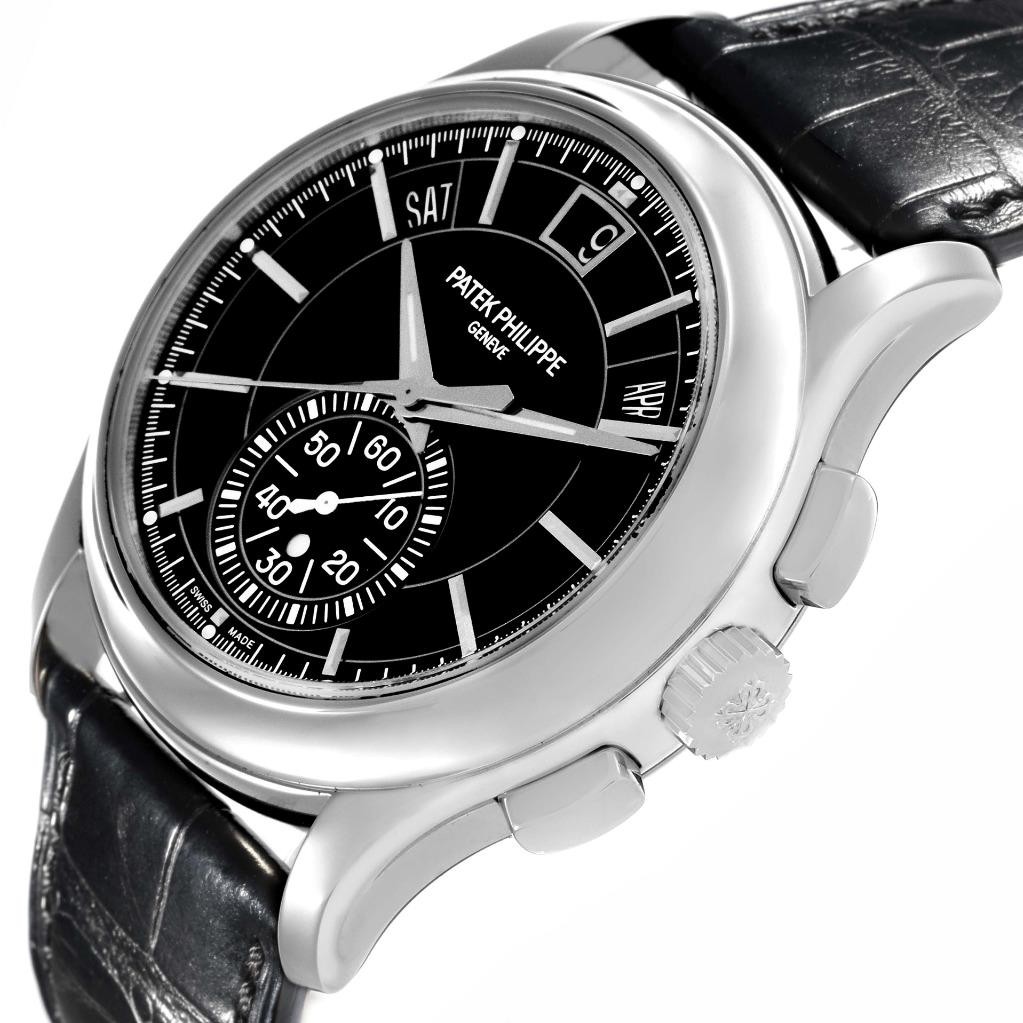 Patek Philippe Complications Annual Calendar Black Dial Platinum Watch 5905 Patek Philippe Complications Annual Calendar Black Dial Platinum Watch 5905 Click image to enlarge Description SwissWatchExpo 404-814-1814 Model number 5905P - 001 Stock number 67415 Year Serial Number 598xxxx MSRP Gender Men's Movement Automatic self-winding chronograph movement. Jewels 37 Caliber CH 28-520 IRM QA 24H Case Platinum case 40 .0 mm in diameter. Exhibition sapphire crystal case back. Crystal Scratch resistant s apphire crystal. Dial Black dial with applied white gold baton hour markers . White gold epee hands. Annual calendar complication displaying the Day, Date & Month through windows located beneath the 10, 12 and 2 o'clock postions. Chronograph sub-dial at the 6 o'clock position. Bezel Platinum bezel. Bracelet Black leather strap with platinum tang buckle. Condition Excellent condition Engravings None Box & papers Patek box. Exclusive SwissWatchExpo Certificate of Authenticity. Authenticity 100% authentic. Our elite in-house team of Swiss-trained master watchmakers inspect and certify the authenticity and the condition of the watch. Working condition Timed to precision on witschi watch expert timing machine. Running strong and keeping the accurate time. Warranty The watch is covered by swiss watch expo one year warranty on anything but abuse. Pictures All the photos are of the actual watch for sale Payment - We ONLY accept payments in United States Dollars (USD). - Payments must be made within 5 days of winning the auction. Shipping Shipping Methods All shipments are sent fully insured, using the following carrier methods: * Domestic - UPS. * International - No international shipping available Terms of Sale 18 month Limited Warranty Swiss Watch Expo is honored to have the opportunity to serve you. That's why we stand by all of our products with a full 18 month limited warranty. If an item we sell you should fail as a result of a manufacturer's defect at any time during the first year and a half , we will repair or replace the item at absolutely no cost to you. Not covered by warranty: - Regular wear-and-tear from normal use. - External damage to the product. Any damages resulting from wear to the watch case, crystal/glass, watch bracelet, watch bezel, straps, screws, crown/stem, finishes, clasps/buckles, or any other physical damage to the watch. - defects caused by outside force or improper use. Consequential and incidental damages. - the loss of precious, semi-precious stones from settings. - Outside modifications and third party repair attempts of any kind will void the warranty. - Any damage if used under conditions which exceed the watch manufacturer?s water resistance guidelines. - Watches that are labeled as water resistant feature a screw down crown. The crown must be screwed down properly at all times to keep the watch casing watertight. Water damage is not covered under the warranty unless it is proven defective by the SwissWatchExpo Repair and service Center. Our 100% Money-Back Guarantee At Swiss Watch Expo, we understand that your purchase is a significant investment - one that you will pass down to future generations. That's why we're happy to give you a no-questions-asked money-back guarantee with no restocking fees. If you're not satisfied with your purchase, just let us know within 7 days after the purchase and we'll honor your return and issue a full refund, no questions asked. *Deductible amount for domestic shipping costs: $50 About Us This fine piece is a part of collection offered by Swiss Watch Expo , members of the National Association of Watch and Clock Collectors (NAWCC) and the International Watch and Jewelry Guild (IWJG). We are third generation jewelers who have been selling fine Swiss timepieces and elegant jewelry since 1982. We've built our reputation on quality, service and integrity, and we treat each customer with the utmost respect. We stand by all of our products with a generous warranty and guarantee, so you always know that when you bid with Swiss Watch Expo , you can can bid with confidence! About Swiss Watch Expo Thank you for the opportunity to serve you and welcome the Swiss Watch Expo ebay auction, where we proudly offer our collection of top quality Swiss timepieces and fine jewelry. We are third generation European trained master watchmakers and jewelry makers dealing in Fine Swiss watches, elegant gemstones and precious jewelry for nearly 30 years. Why You Should Choose Swiss Watch Expo Unlike many online resellers, at Swiss Watch Expo , we have built our business the old fashioned way - through our brick and mortar store in Atlanta, Georgia, providing our customers the very best products at an incredible value, while giving them the exemplary service they deserve. Now, as we serve the Ebay community, our commitment to the same philosophies holds true. We invite you to browse through our customer feedback to read about the experience others have had with us through Ebay. What Makes Swiss Watch Expo Products Better Than The Competition Every watch we sell has been completely inspected to ensure years of optimal functionality. What's more, there are never any middlemen involved in the process. From the time we purchase a watch, our experianced master watchmakers handle all repairs and restoration, making the watch as good as new. We've invested thousands into our state-of-the-art repair facility in order to carry out our commitment to quality. As for jewelry, every item is of the highest quality, using only the finest precious metals and gemstones available. When You Choose Swiss Watch Expo , You Have Nothing To Lose When you purchase an item from Swiss Watch Expo on Ebay, you have complete peace of mind. That's because we offer you a generous money-back guarantee without any restocking fee, no questions asked. Our philosophy is simple: By being committed to quality, service and value, we have satisfied customers who come back to us time and time agai