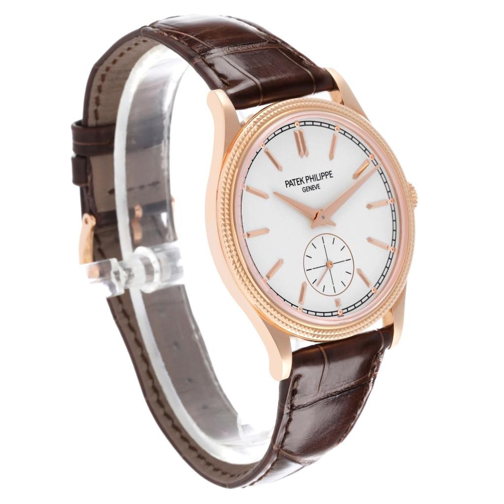 Patek Philippe Calatrava Rose Gold Silver Dial Mens Watch 6119R Box Papers Patek Philippe Calatrava Rose Gold Silver Dial Mens Watch 6119R Box Papers Click image to enlarge Description Swiss Watch Expo 404-814-1814 Model number 6119R-001 Stock number 65913 Serial number 728xxxx Year 2021 Gender Mens MSRP $33,110.00 Movement Manual winding movement. Jewels 27 Caliber 30-255 PS Case 18k rose gold round case 39.0 mm in diameter. Transparent exhibition sapphire crystal case back. Patek Philippe logo on the crown. Crystal Scratch resistant s apphire crystal. Dial Silver grained dial with rose gold index hour markers and hands. Small seconds subdial at 6 o'clock. Bezel 18k rose gold hobnail bezel. Bracelet Brown leather strap with an 18k rose gold tang buckle. Condition Mint condition. Authenticity 100% authentic. Engravings None Box & papers Patek Philippe box and papers. Working condition Timed to precision on Witschi watch expert timing machine. Running strong and keeping the accurate time. Warranty This watch is covered by Swiss Watch Expo's one year warranty on anything but abuse. Pictures All the photos are of the actual watch for sale. Payment - We ONLY accept payments in United States Dollars (USD). - Payments must be made within 5 days of winning the auction. Shipping Shipping Methods All shipments are sent fully insured, using the following carrier methods: * Domestic - UPS. * International - No international shipping available Terms of Sale 18 month Limited Warranty Swiss Watch Expo is honored to have the opportunity to serve you. That's why we stand by all of our products with a full 18 month limited warranty. If an item we sell you should fail as a result of a manufacturer's defect at any time during the first year and a half , we will repair or replace the item at absolutely no cost to you. Not covered by warranty: - Regular wear-and-tear from normal use. - External damage to the product. Any damages resulting from wear to the watch case, crystal/glass, watch bracelet, watch bezel, straps, screws, crown/stem, finishes, clasps/buckles, or any other physical damage to the watch. - defects caused by outside force or improper use. Consequential and incidental damages. - the loss of precious, semi-precious stones from settings. - Outside modifications and third party repair attempts of any kind will void the warranty. - Any damage if used under conditions which exceed the watch manufacturer?s water resistance guidelines. - Watches that are labeled as water resistant feature a screw down crown. The crown must be screwed down properly at all times to keep the watch casing watertight. Water damage is not covered under the warranty unless it is proven defective by the SwissWatchExpo Repair and service Center. Our 100% Money-Back Guarantee At Swiss Watch Expo, we understand that your purchase is a significant investment - one that you will pass down to future generations. That's why we're happy to give you a no-questions-asked money-back guarantee with no restocking fees. If you're not satisfied with your purchase, just let us know within 7 days after the purchase and we'll honor your return and issue a full refund, no questions asked. *Deductible amount for domestic shipping costs: $50 About Us This fine piece is a part of collection offered by Swiss Watch Expo , members of the National Association of Watch and Clock Collectors (NAWCC) and the International Watch and Jewelry Guild (IWJG). We are third generation jewelers who have been selling fine Swiss timepieces and elegant jewelry since 1982. We've built our reputation on quality, service and integrity, and we treat each customer with the utmost respect. We stand by all of our products with a generous warranty and guarantee, so you always know that when you bid with Swiss Watch Expo , you can can bid with confidence! About Swiss Watch Expo Thank you for the opportunity to serve you and welcome the Swiss Watch Expo ebay auction, where we proudly offer our collection of top quality Swiss timepieces and fine jewelry. We are third generation European trained master watchmakers and jewelry makers dealing in Fine Swiss watches, elegant gemstones and precious jewelry for nearly 30 years. Why You Should Choose Swiss Watch Expo Unlike many online resellers, at Swiss Watch Expo , we have built our business the old fashioned way - through our brick and mortar store in Atlanta, Georgia, providing our customers the very best products at an incredible value, while giving them the exemplary service they deserve. Now, as we serve the Ebay community, our commitment to the same philosophies holds true. We invite you to browse through our customer feedback to read about the experience others have had with us through Ebay. What Makes Swiss Watch Expo Products Better Than The Competition Every watch we sell has been completely inspected to ensure years of optimal functionality. What's more, there are never any middlemen involved in the process. From the time we purchase a watch, our experianced master watchmakers handle all repairs and restoration, making the watch as good as new. We've invested thousands into our state-of-the-art repair facility in order to carry out our commitment to quality. As for jewelry, every item is of the highest quality, using only the finest precious metals and gemstones available. When You Choose Swiss Watch Expo , You Have Nothing To Lose When you purchase an item from Swiss Watch Expo on Ebay, you have complete peace of mind. That's because we offer you a generous money-back guarantee without any restocking fee, no questions asked. Our philosophy is simple: By being committed to quality, service and value, we have satisfied customers who come back to us time and time again. Our entire staff is committed to providing you unparalleled quality and incomparable service. We hope that we have the opportunity to provide you with the same experience our loyal customers have come to expect from Swiss Watch Expo. Pictures sell! Auctiva