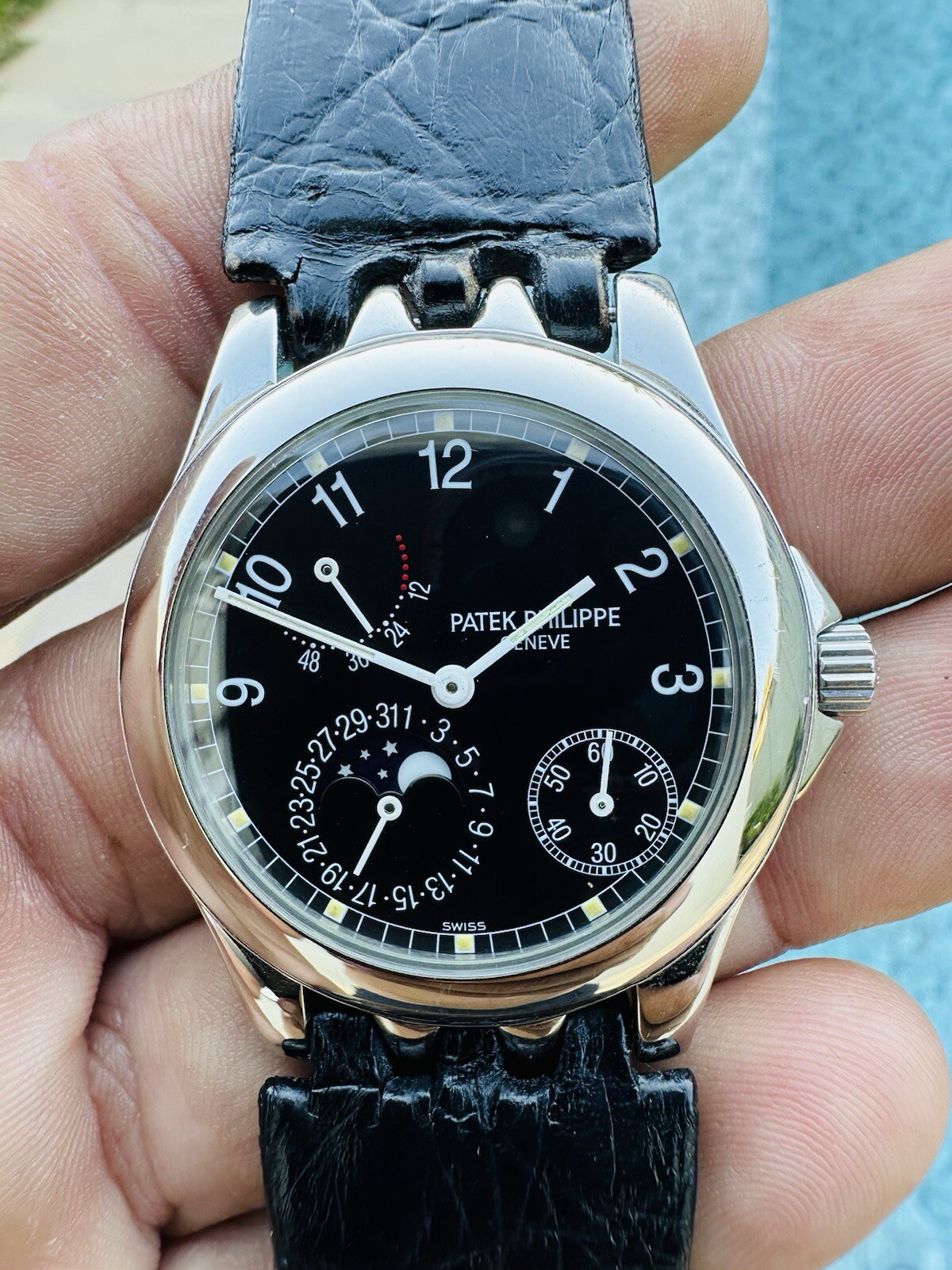 Check our other items! We have amazing watches for sale! We combine shipping! We ship DHL worldwide! EBay 100% buyer protection guaranteed!! **US sales tax are applied by eBay** Not recently timed, serviced or regulated Its running fine but we dont guarantee exact precision Selling as is Patek Philippe Neptune Moonphase Power Reserve Steel Mens Watch 5085 Watch head with aftermarket strap, no bracelet Original Papers incluided number 5085A/1A-001 Gender Mens Movement Automatic self-winding movement. Self-compensating balance spring, solid gold rotor, 48 hour power reserve and engraved with the Geneva Seal. 29 jewels, Caliber 240/164 automatic. Jewels 29 Caliber 240/164 Case Stainless steel round case 37.0 mm in diameter. Shouldered screw down crown. Screw down transparent exhibition sapphire crystal caseback. Quick set buttons at 5 and 8. Crystal Scratch resistant sapphire crystal. Dial Black dial with white Arabic numerals. White baton hands with luminous inserts. White outer minute track with five minute markers. Subsidiary dials at 4 and 7 for seconds and date, fan form power reserve indication at 10. Watch head with aftermarket strap, no bracelet Original Papers incluided 100% EBay buyer protection guarantee! Whoever gets this watch will love it!!! Hard to find! Don’t miss it!