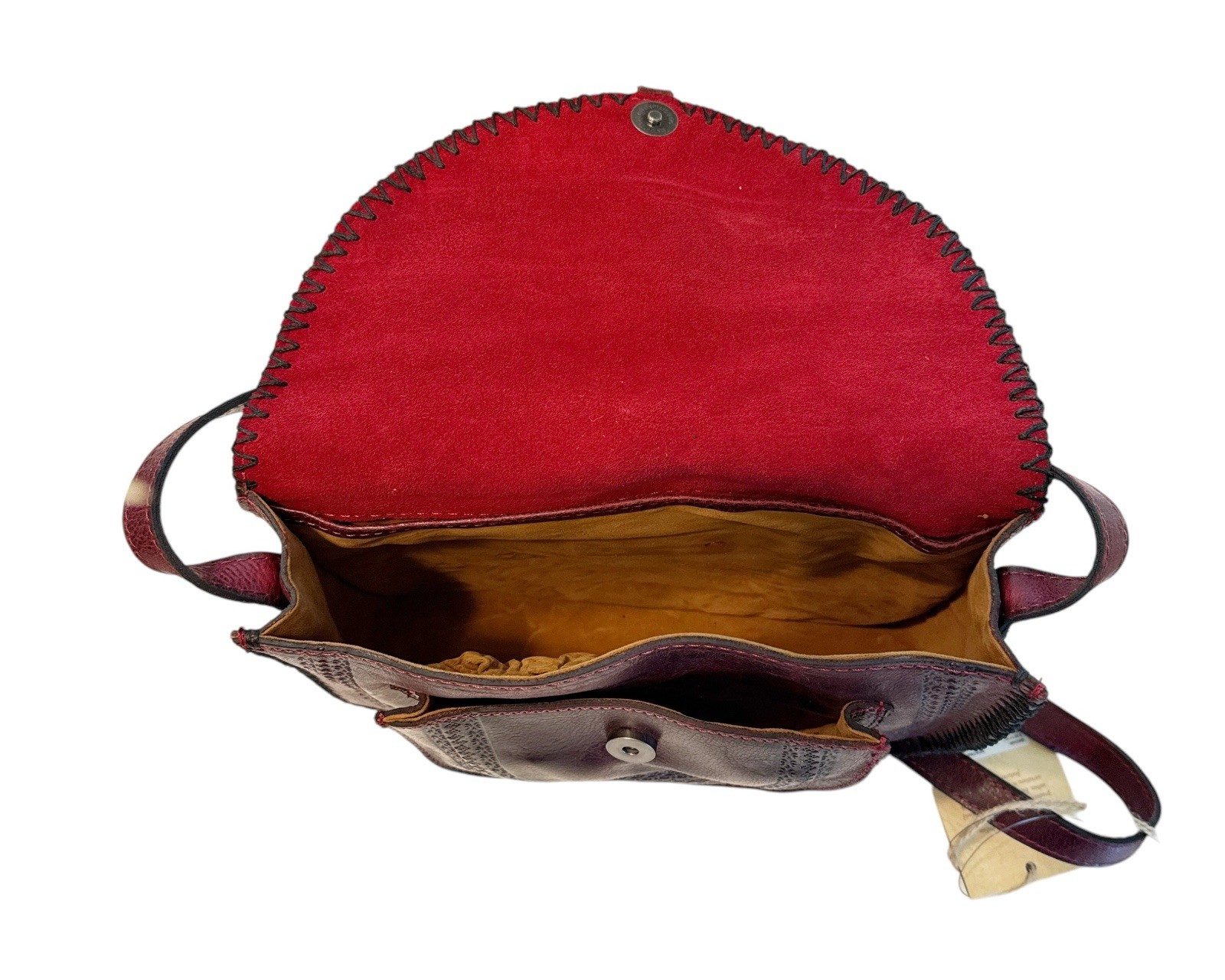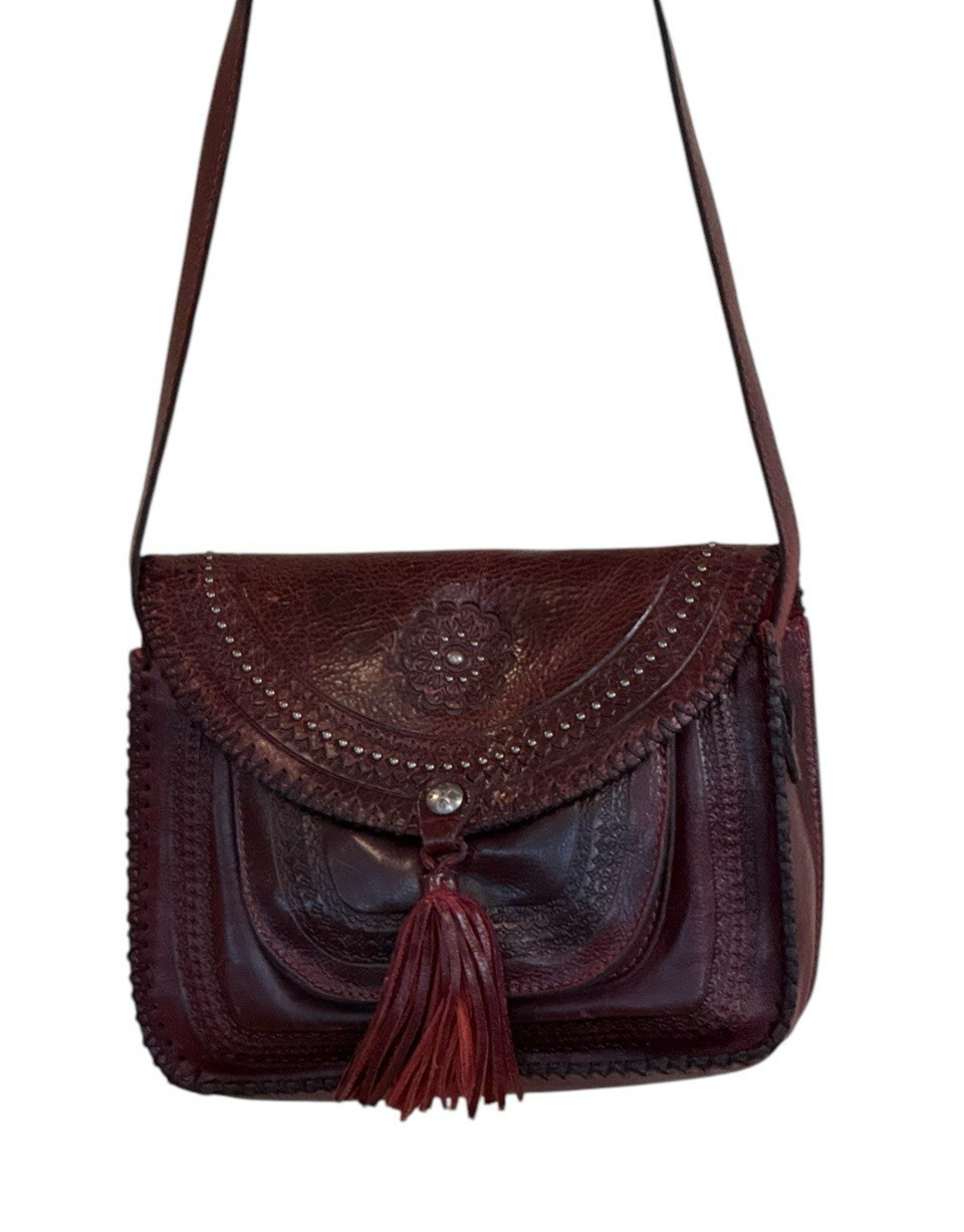 The Patricia Nash Beaumont Leather Crossbody Shoulder Bag is a stylish and versatile accessory perfect for various occasions such as travel, parties, casual outings, and business events. Made of high-quality leather with a distressed finish, this square-shaped bag features a magnetic and snap closure, brown adjustable crossbody strap, and silver tone hardware accents. The bag includes outer pockets, two compartments, and tassel accents, making it both functional and fashionable. It comes with an original dust bag, adding to its appeal. The brown exterior color and Southwestern theme give it a unique and trendy look, making it a must-have addition to any wardrobe. MSRP $199 - Size Height 8.5" Length 10.5" Depth 3" Strap Drop 21" adjustable - Color Berry Red/Brown Distressed - NWT. FLAW One minor mark on the back. It appears to be a manufacturing flaw when distressed. See photos. - Leather with silver studding and hardware - Smoke and pet free home Please visit my store at https://www.ebay.com/str/theuniqueredhead . Thank you for your consideration. Please message me if you have any questions. I do combined shipping on my items in the store.