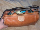 The Patricia Nash Cross Body Handbag Satchel in brown leather is a stylish and functional accessory for women. With a woven pattern and gold hardware accents, this medium-sized handbag features a detachable strap for added versatility. The brown suede lining adds a touch of luxury to the interior, while the bottom studs provide durability. Perfect for everyday use, this satchel/top handle bag combines fashion and functionality with its adjustable strap and convenient zipper closure.