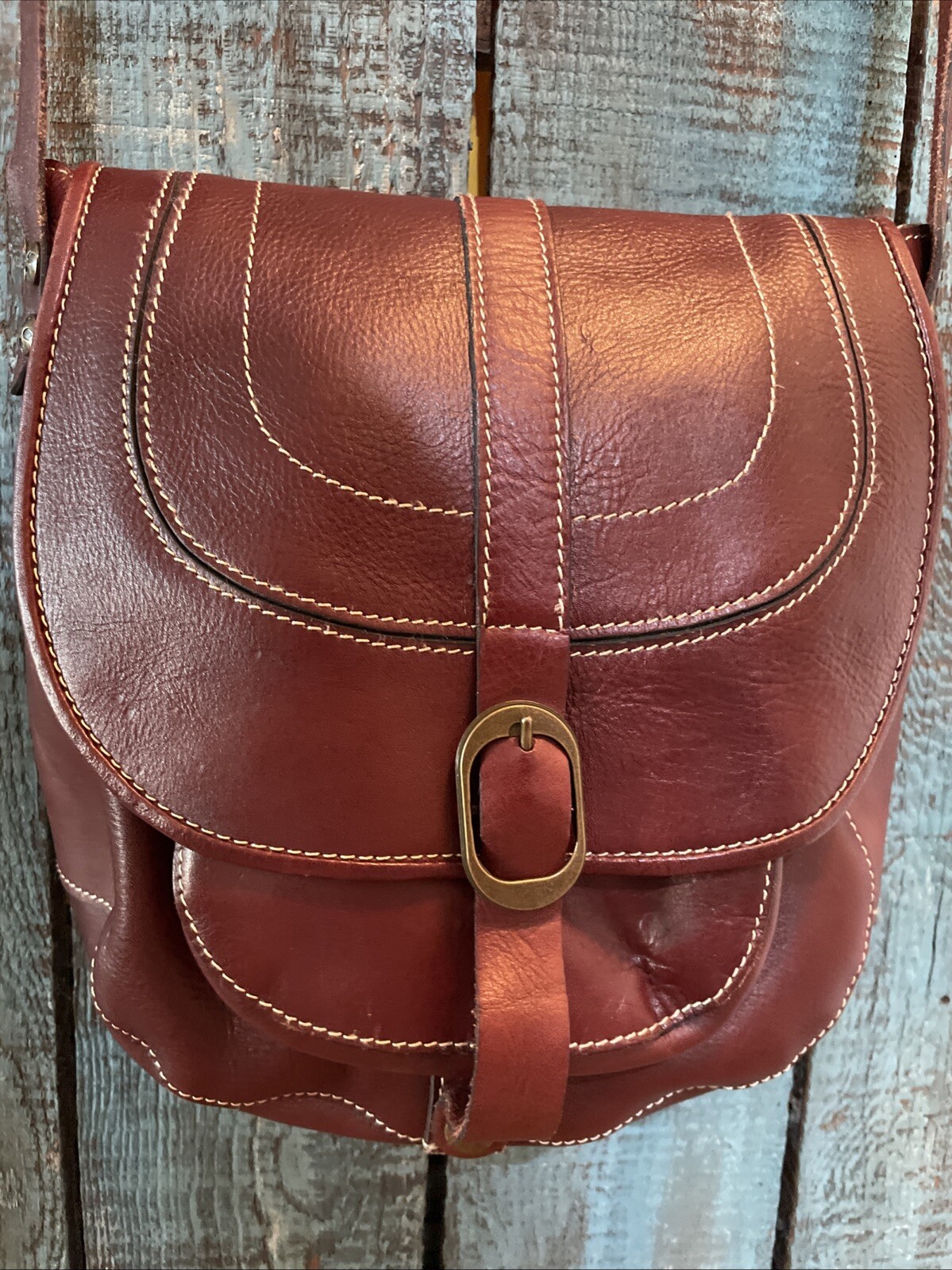 This beautiful Patricia Nash crossbody messenger bag is perfect for any occasion. The bag features a crescent shape with a magnetic, buckle, and snap closure. It is made of high-quality leather in a gorgeous chestnut color and has a smooth finish. The bag has a large size with a width of 15 inches, a height of 13 inches, and a depth of 12 inches. It has a crossbody strap with an adjustable handle drop and is designed for unisex adults. The bag has brass hardware and features a buckle and strap accent, as well as a zipper on one inside pocket and it has other inside pockets to hold essentials and is lined with gold soft fabric. The bag is not only stylish but also functional, making it an ideal choice for travel, casual outings, and business meetings.