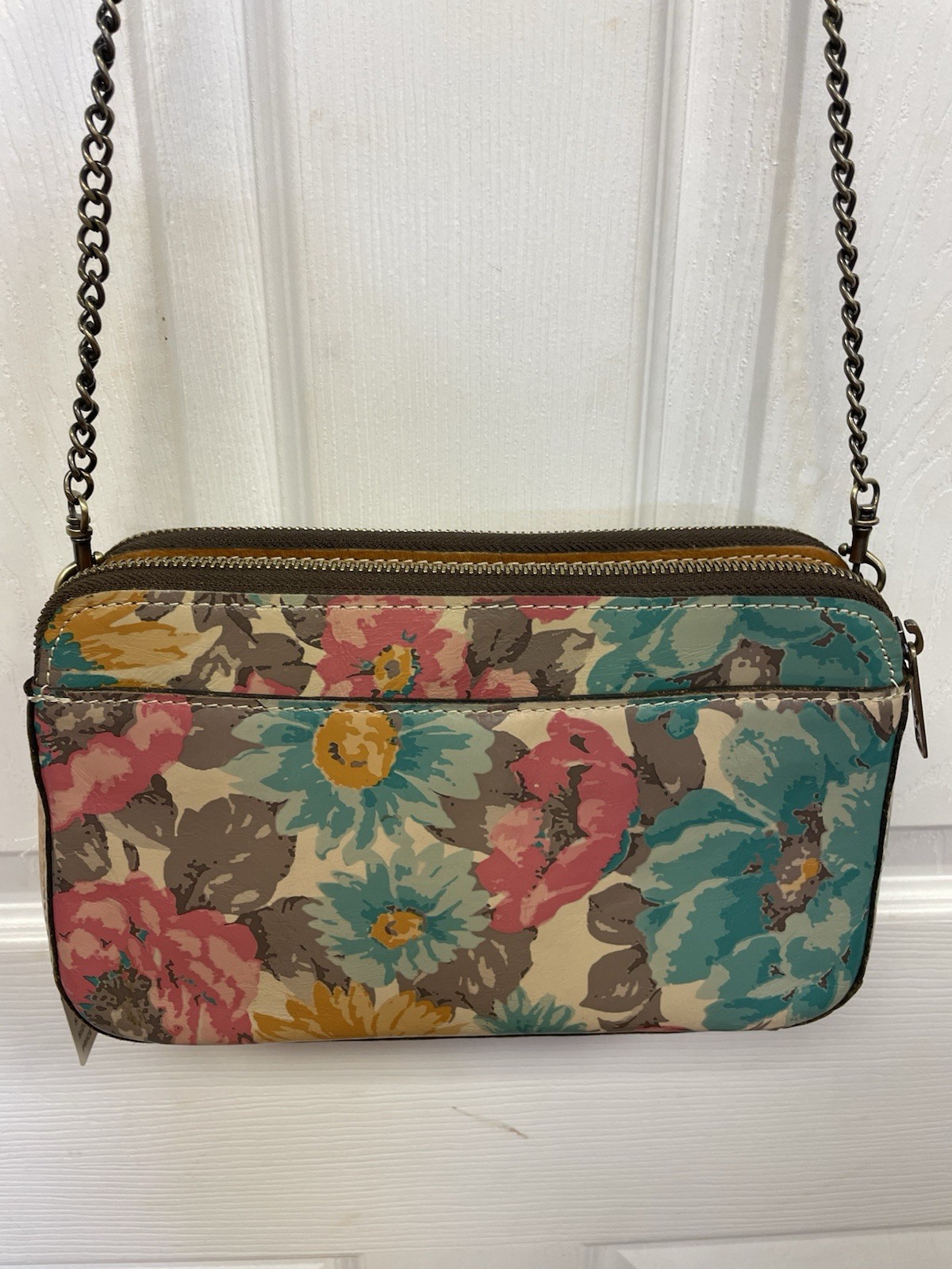 The Patricia Nash Crossbody Floral Nice is a stylish and functional handbag designed for women. Made of high-quality leather with a beautiful floral pattern, this crossbody bag features a zip and magnetic closure for secure storage. The multicolor exterior with a tan lining adds a touch of elegance to any outfit, making it a perfect accessory for any occasion. Adjustable smoke and pet free home