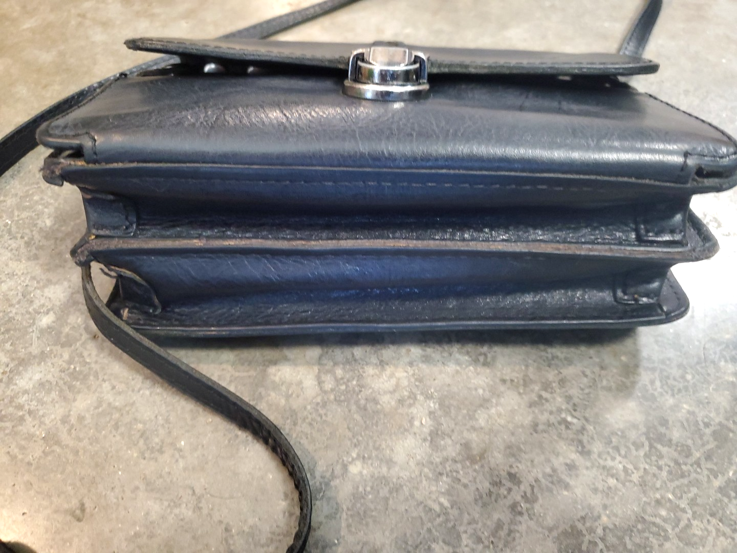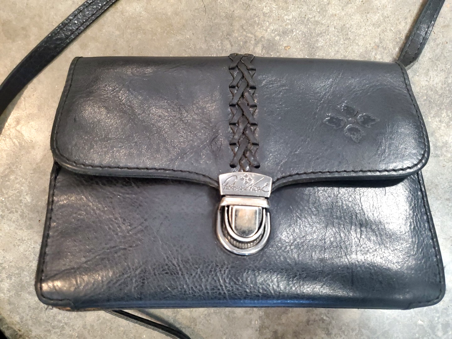 Patricia Nash Lanza Crossbody Organizer Blk Leather Purse Bag Convertible Clutch The Patricia Nash Lanza Crossbody Organizer in black leather is a versatile and stylish purse bag that can be worn as a convertible clutch (missing wristlet strap). With a solid rectangular shape and a push lock closure, this small-sized bag features a crossbody adjustable strap handle style in black leather. The gunmetal hardware accents add a touch of sophistication, while the interior suede lining and inner pockets provide organization and functionality. Perfect for various occasions such as crossbody, travel, party, casual, workwear, and business, this designer Italian-inspired accessory from Patricia Nash is a must-have for any fashion-forward woman. I cleaned and polished. **It might have a few signs of use, but all imperfections should be shown in photos. Please see photos. Missing Wristlet Strap.**
