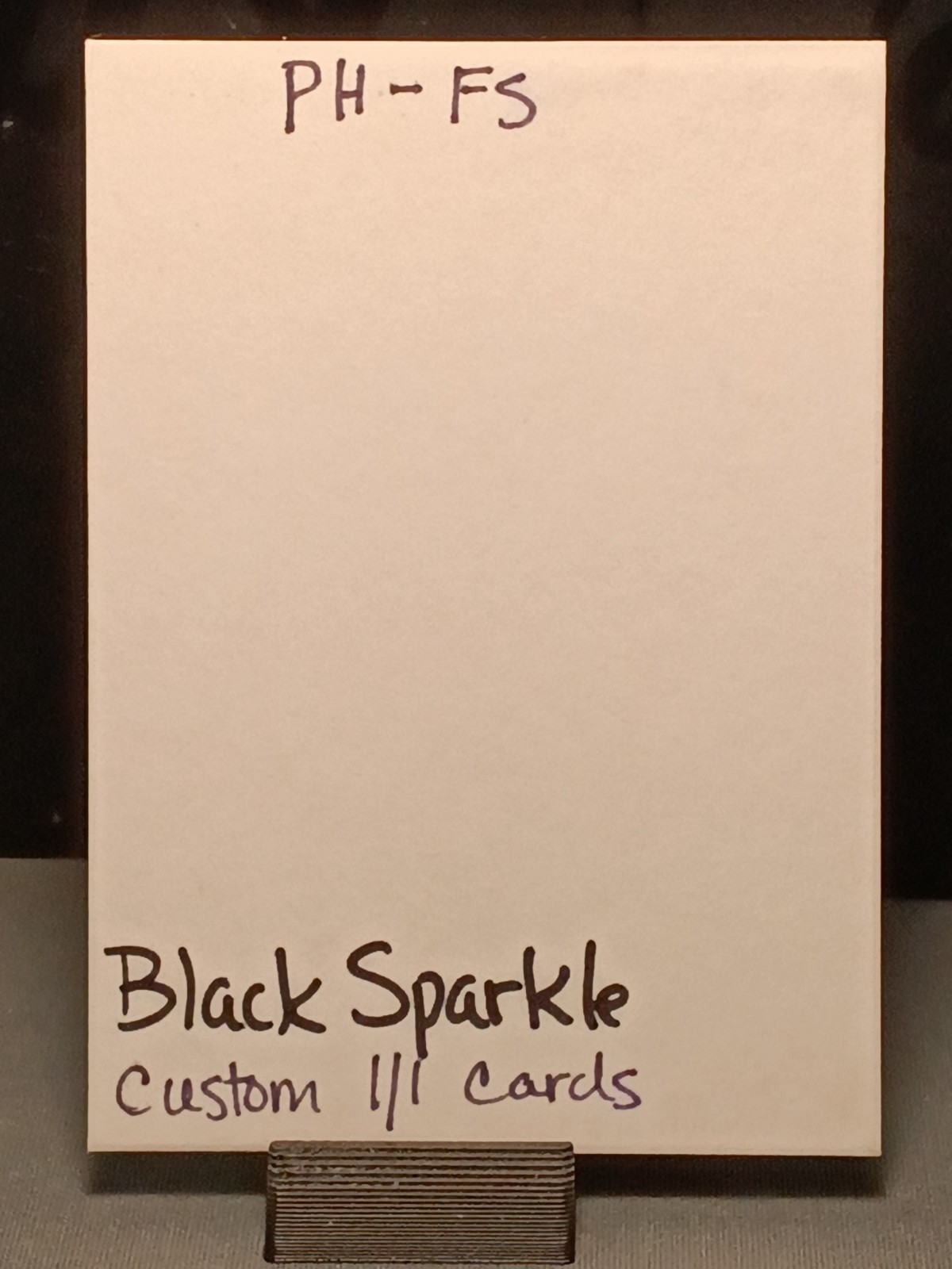 The product is a highly collectible one-of-a-kind trading card featuring Patrick Mahomes in his rookie year, part of the Gary's customer 1/1 set and has a Black Sparkle parallel variety, making it a rare and exclusive piece for fans of the Kansas City Chiefs quarterback. The card is manufactured in 2023 and is a custom print run of 1/1, adding to its unique appeal for collectors. It is a 55 Pt. card made of card stock and is a valuable addition to any sports trading card collection.