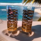 Beautiful glass Patron logo highball set. New. Gold pattern run thru the glass. International shipping extra
