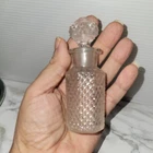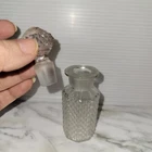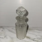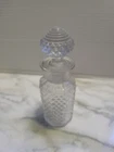 Add a touch of elegance to your bar collection with this beautiful patterned pressed glass bottle decanter. The diamond pattern adds a unique and stylish touch to the clear glass, making it a perfect addition to any occasion. The set includes a lid/stopper and a decanter with a 40oz capacity, making it ideal for storing your favorite wine or liquor. Crafted from high-quality glass, this decanter is leak-proof, stain/water-resistant, and washable. It is also compatible with large bottles and features a mid-century modernism style, making it a perfect addition to your home bar or collection. This licensed reproduction item is unmarked, and its brand is not specified. Still, it is a fantastic piece that will surely impress your guests.