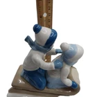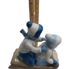 Paul Sebastian Porcelain Figurine 6" Boy & Girl Sledding On Sled 1992 blue white.