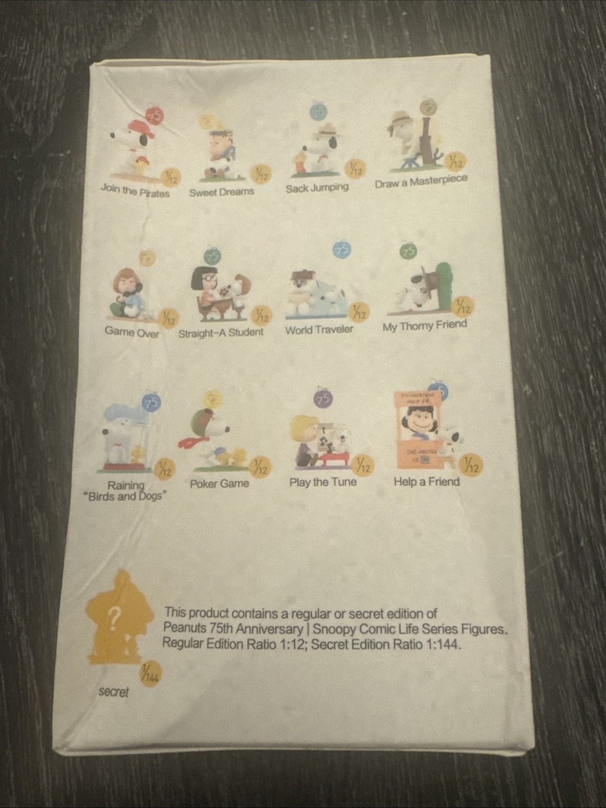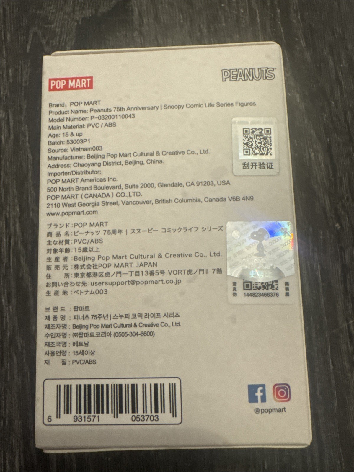 The product is a set of authentic Snoopy comic life series figures from POP MART, celebrating the 75th anniversary of Peanuts. These action figures feature the beloved character Snoopy in various comic-inspired designs, perfect for fans of the Peanuts franchise. Made in the USA, these figures are a must-have for collectors and enthusiasts of classic comics and TV shows.