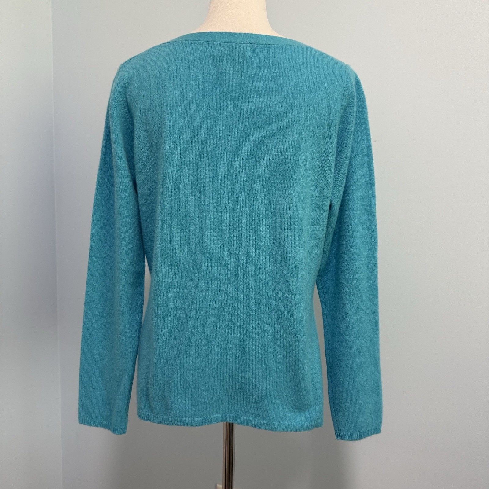 Peck And Peck 2-ply 100% Cashmere Aqua Pullover Sweater Size XL.