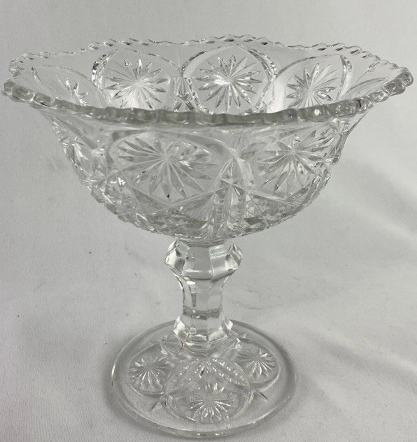 $ 78.15Vintage Clear Cut Glass Pedastal Compote Serving Bowl Candy Dish 6.75" Tall