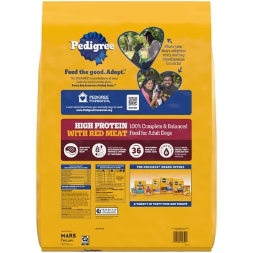 Important Note for Our Valued Customers: To offer you the best prices with free shipping, we occasionally experience shipping delays. If this happens, we’ll notify you immediately, issue a full refund, and invite you to place a new order at your convenience. To keep costs low, we sometimes reuse branded packaging boxes for shipments—we appreciate your understanding if you receive your order in repurposed packaging. Rest assured, all products we sell are 100% brand new, unopened, and freshly manufactured, including pet food and human-grade items, with a minimum 8-month shelf life remaining. If any issues arise, please contact us first—we’re committed to resolving them quickly. If you’re not completely satisfied, we offer a full refund with no hassle. Thank you for your trust and support! Highlights Made With Real Meat: This dry dog food recipe is made with real red meat and 25% more protein compared to Adult Complete Nutrition, giving your dog a familiar flavor they will love. Great Tasting: Pedigree High Protein Adult Dry Dog Food, Beef and Lamb Flavor is a great-tasting dry dog food recipe with whole grains, protein, and accents of vegetables. Quality Nutrition: This high protein dog food recipe is made with 36 vitamins, minerals, and amino acids to support your dog’s health and vitality. Supports Healthy Skin and Coat: Pedigree High Protein Adult Dry Dog Food, Beef and Lamb Flavor is enriched with Omega 6 Fatty Acid and Zinc to help nourish a healthy skin and coat. Quality Recipe: This dry dog food recipe is crafted with no high fructose corn syrup, artificial flavors, or added sugar. Contains one (1) 18 lb. Bag of Pedigree High Protein Adult Dry Dog Food, Beef and Lamb Flavor. Description Dogs bring out the good in us. Pedigree brings out the good in them. Express your love for your dog by serving Pedigree High Protein Adult Dry Dog Food, Beef and Lamb Flavor recipe. This great-tasting dry dog food recipe is made with real red meat and contains whole grains, protein, and accents of vegetables so you can feel confident your dog is getting a well-balanced meal. To support your dog’s health and vitality, this high protein dog food recipe is formulated with 36 vitamins, minerals, and amino acids. It also contains Omega 6 Fatty Acid and Zinc to help nourish a healthy skin and coat. With no high fructose corn syrup, artificial flavors, or added sugars, Pedigree High Protein Adult Dry Dog Food, Beef and Lamb Flavor shows your dog that you care…and have great taste.