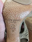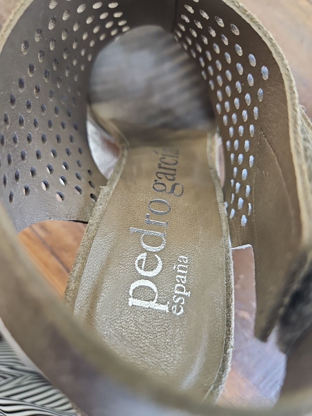 The Pedro Garcia Samara slingback sandals in size 6.5 feature a stylish peep toe design with a 4.5" stiletto heel. Made from perforated suede, these ultra-high heels are perfect for weddings, parties, or cocktails. With a cushioned and breathable insole, adjustable ankle strap, and lightweight outsole, these sandals provide both comfort and style for any occasion. The brown color and elegant design of these Pedro Garcia sandals make them a chic choice for any fashion-forward woman looking to make a statement. Made in Spain, they exude a sense of luxury and sophistication....B2355