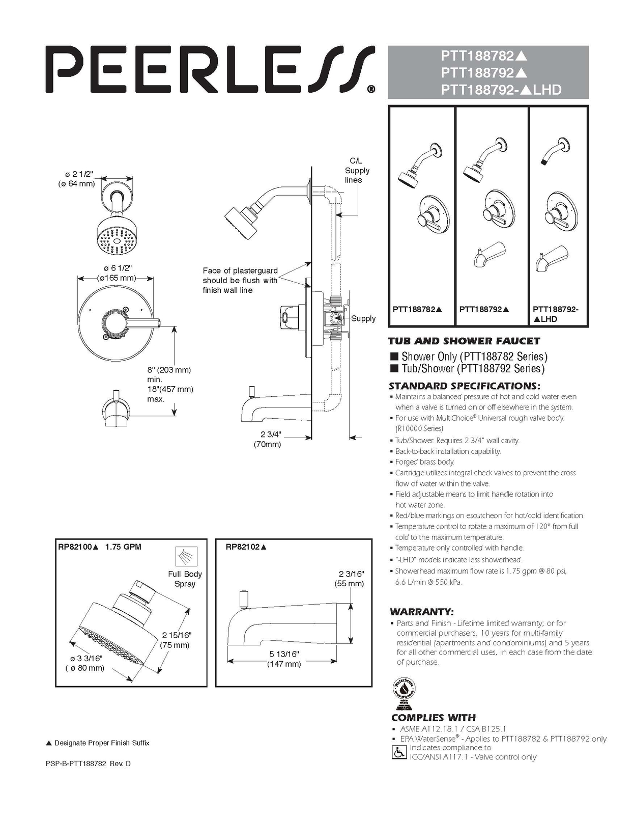 Peerless Precept Tub & Shower Trim Kit The minimal design of the Precept® Bathroom Collection adds a modern touch to the bathroom.The tub & shower trim kit fits Delta MultiChoice Universal valve rough only (Delta MultiChoice Universal valve rough R10000 sold separately) Includes Delta 13-Series pressure-balance cartridge. This factory refurbished trim kit looks and functions as new and is backed by a 10 year Peerless warranty. DETAILS Matte Black Finish Includes Delta 13-Series pressure-balance cartridge Must order Delta MultiChoice Universal valve rough (R10000) separately to complete the unit Spray settings include:Full Body Spray, Massage Spray, Full Spray with Massage, Focus Spray, Full Spray with Focus Spray, and Pause Temperature only controlled with handle ADA Compliant PTT188792-BL SHIPPING DETAILS We will gladly ship internationally, however, additional shipping and handling fees will apply. Please contact us for shipping quotes. We Gladly Combine Shipping!