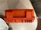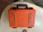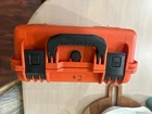 Orange waterproof, pelican case used to ship hard drives fro movie theaters around the world, has shipping labels attached to the outside, when I ship it to you, I will just add a label and ship it. Has foam cut out on the inside for a hard drive.. Free shipping in the contiguous USA Specifications: Body: Injection Molded HPX high performance resin Latch: Valox - Polybutylene Terephthalate (PBT) Latch (ALT): Xenoy - Polyester/Polycarbonate blend O-Ring: Silicone Sponge Pins: Stainless Steel Pins (ALT): Aluminum Foam: 1.3/1.35 polyester Purge Body: Valox - Polybutylene Terephthalate (PBT) Purge Body (ALT): Xenoy - Polyester/Polycarbonate blend Purge Vent: Gortex membrane Purge O-Ring: Buna-N, 50-60 Durometer Shore A Lid Depth: 2.00" (5.1 cm) Bottom Depth: 4.00" (10.2 cm) Total Depth: 6" (15.2 cm) Interior Volume: 0.42 ft³ (0.012 m³) Weight With Foam: 4.90 lbs (2.2 kg) Weight Without Foam: 0004.20 lbs (1.9 kg) Buoyancy: 26.20 lbs (11.9 kg) Minimum Temperature: -20° F (-29 ° C) Maximum Temperature: 140° F (60 ° C) Certifications: MIL-STD-810F / ATA 300 / FED-STD-101C Interior (L X W X D): 13.00" x 9.20" x 6.00" (33 x 23.4 x 15.2 cm) Exterior (L X W X D): 14.20" x 11.40" x 6.50" (36.1 x 29 x 16.5 cm)