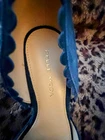 The Pelle Moda Kenny Women's Shoes in UK size 7 (US size 5.5, EU size 39) are elegant blue stiletto heels with a pointed toe and slip-on closure. These solid heels feature scalloped accents and a mid heel height of 2.5 inches, making them perfect for various occasions including parties, casual outings, formal events, and business meetings. Crafted from suede with a synthetic lining and outsole, these D'Orsay style heels exude a classic and dressy look, ideal for women looking for stylish and comfortable footwear options for all seasons.