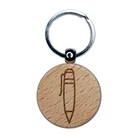 Pen Outline Engraved Wood Round Keychain Tag Charm