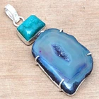 Pendant Green Slice Drusy Gemstone Handmade Silver Jewelry 2.5"