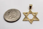 Elevate your style with this elegant 14k yellow gold pendant featuring the iconic Star of David. The pendant measures 33.8mm in height and 22mm in width, making it a subtle yet noticeable addition to any outfit. Its classic design is perfect for those who appreciate the timeless appeal of gold jewelry. Crafted in the United States, this pendant is a fine example of quality and sophistication. The pendant is devoid of any stones, highlighting the warm, unadorned glow of the gold. It's a versatile piece that can complement both casual and formal attire, making it a great choice for anyone looking to add a touch of class to their look. 14K REAL GOLD AUTHENTICITY GUARANTEE. Solid Gold.