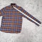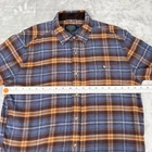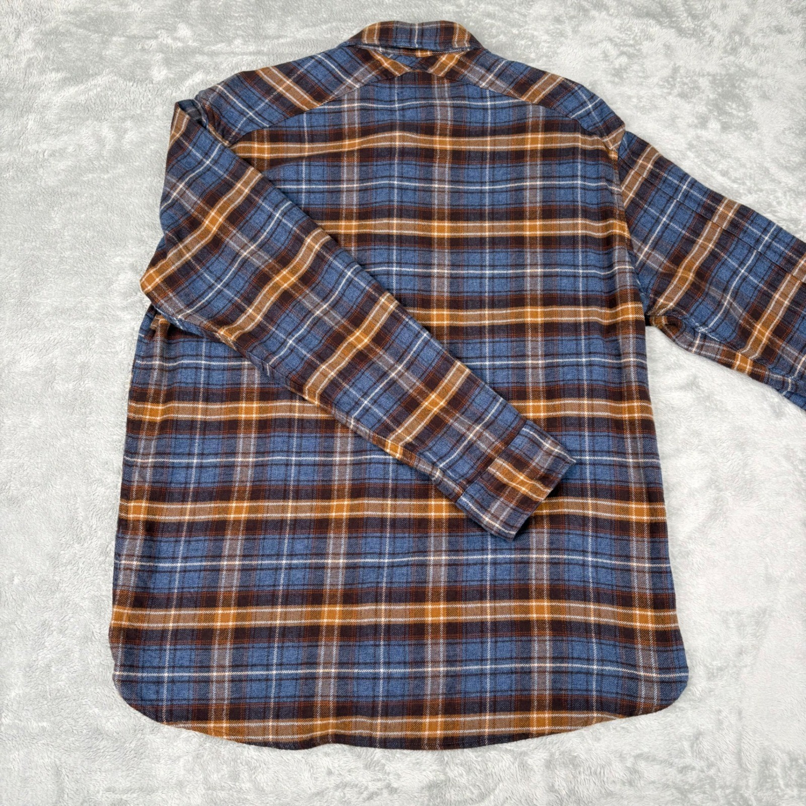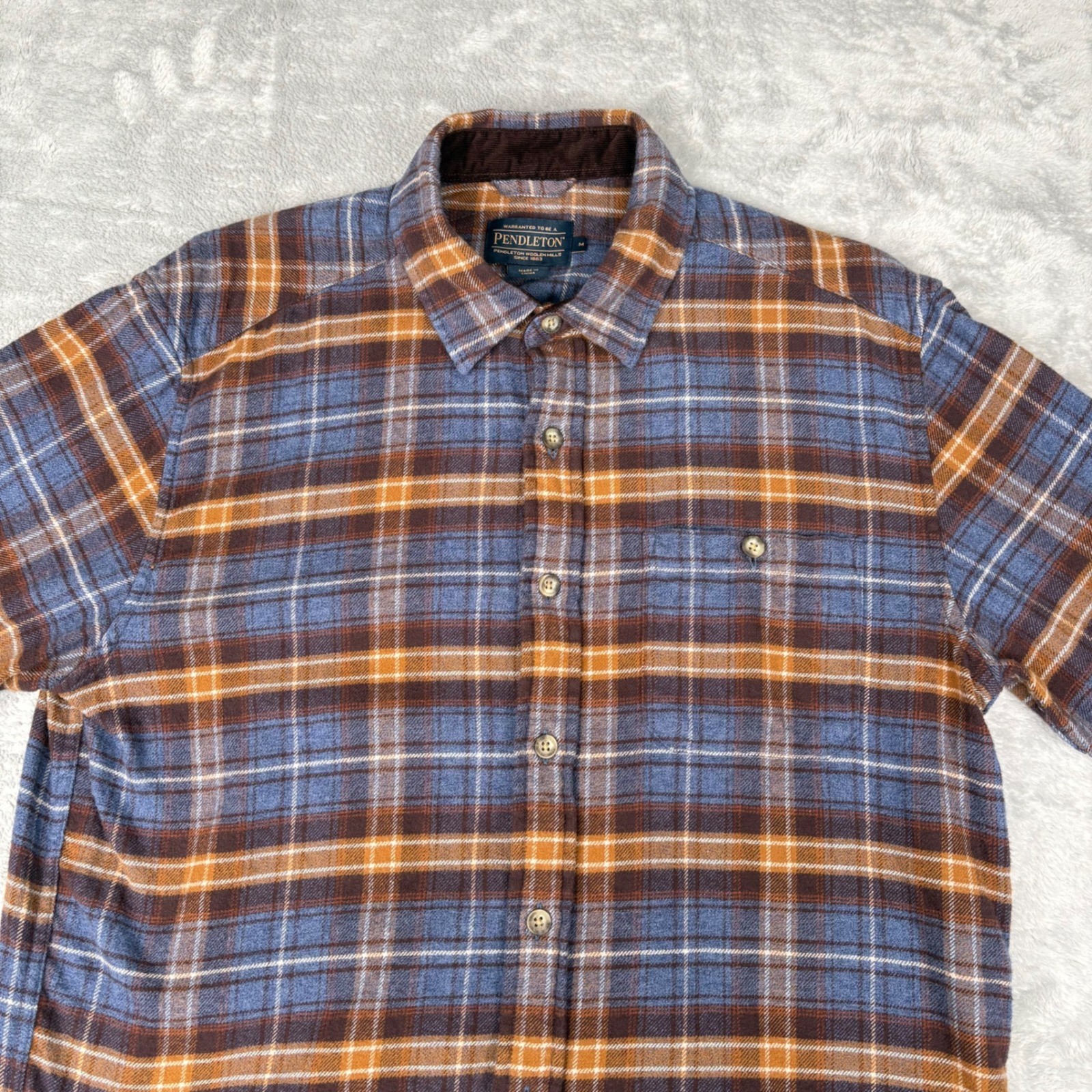 Timeless comfort awaits with this handsome Pendleton flannel shirt. Imagine yourself wrapped in the soft embrace of its classic plaid design, featuring a beautiful blend of blue and brown hues that evoke a sense of rustic charm. This versatile piece is more than just a shirt; it's a statement of enduring style with its subtle corduroy detailing on the inner collar. Perfect for layering on a crisp autumn hike, adding a touch of warmth to a casual weekend brunch, or simply relaxing by the fireplace with a good book, this flannel will quickly become a wardrobe staple. Sleeve Length: Long Sleeve Department: Men Color: Blue Closure: Button Accents: Button Fabric Type: Flannel Pattern: Plaid Material: Cotton Fit: Regular Collar Style: Button-Down Type: Button-Up Character: Retro Features: Breathable, All Seasons, Lightweight Neckline: Collared Keywords: Pendleton, flannel shirt, men's shirt, plaid shirt, button down shirt, blue shirt, brown shirt, medium shirt, cotton shirt, casual shirt, long sleeve shirt, outdoor shirt, vintage shirt, retro shirt