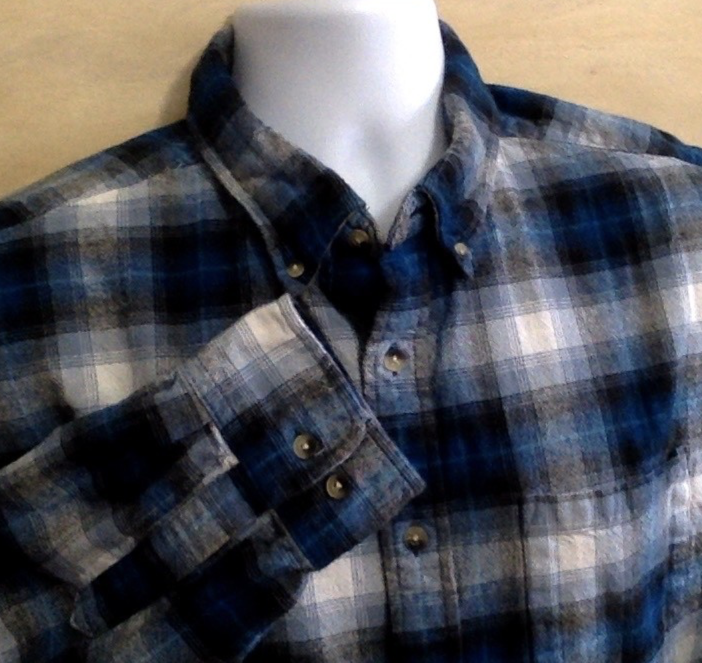 GOOD used condition, still has extra buttons attached, see photos. Measures 24 inches across the chest, sleeves are 23 inches long, collar to hem in back is approx. 30 inches. 100 % cotton flannel. Ships via USPS* ground advantage, in waterproof mailer. Thanks for looking, and enjoy!