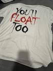 Pennywise IT Horror Stephen King White Printed Shirt Size XXL. You’ll Float Too. Graphic print of Pennywise. Rear “You’ll float too” graphic print. Distress collar markings. Raw bottom hem. Soft and comfortable. Great used condition. No rips, stains or defects. Please see pictures for measurements.