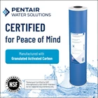 Pentair GAC-BB Big Blue Carbon Water Filter, 10-Inch, Whole House Heavy Duty Granular Activated Carbon (GAC) Replacement Cartridge, 10" x 4.5", reduces bad taste & odors to provide good general purpose drinking water. It fits all 10" Pentair Big Blue or other 10" heavy duty housings and can replace any 10" x 4.5" carbon filter cartridge. It has post-filter that helps reduce carbon fines and other suspended particles from the filtered water. It is NSF International tested and certified for your peace of mind. It has 12,500 gallon capacity and can be replaced every three months or when you notice a drop in water pressure or water quality. EFFECTIVE REDUCTION OF BAD TASTE & ODORS to provide good general-purpose drinking water FITS ALL 10" Pentair Big Blue or other 10" heavy duty housings and can replace any 10" x 4.5" carbon filter cartridge POST-FILTER HELPS REDUCE CARBON FINES and other suspended particles from the filtered water NSF INTERNATIONAL tested and certified for your peace of mind 12,500 GALLON CAPACITY. Replace every three months or when you notice a drop in water pressure or water quality