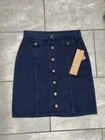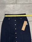 This skirt is a must-have—flattering fit, sturdy twill fabric, and the brass buttons add a chic touch. Love the functional pockets and knee-length cut, perfect for dressing up or keeping it casual. The navy blue goes with everything, and the quality is amazing. Super versatile for work, weekends, or nights out. Feels well-made and stylish—definitely worth it!