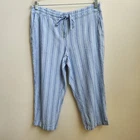 Per Se Pants Womens Large Linen Blend Blue Stripe Beach Coastal Drawstring Capri - Pre-Owned in Very Good Condition - Measurements in Photos - Returns acceptable within 30 days of purchase unworn, in original condition - Check out my E-bay Store. Lots of Choices Available. Reduced shipping for 2 or more items. Let me know before you pay so I can send you an invoice to discount the shipping
