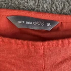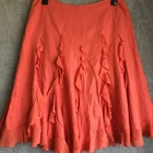 Total length is Approx 27” This beautiful Per Una skirt is a must-have for any fashion-forward woman. The stunning coral orange colour and flared, panelled design make it perfect for a variety of occasions, from parties and weddings to casual outings and business meetings. The skirt is made from high-quality linen and polyester, and features a mid-rise waist, knee-length hem, and zip closure. The skirt is also fully lined and suitable for all seasons, whether you're heading to the beach or attending a festival. With its bohemian, retro, and preppy themes, this skirt is sure to make a statement wherever you go. So why wait? Add it to your wardrobe today!