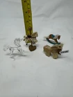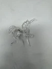 Add charm and character to your holiday décor with this delightful set of horse and unicorn figurines. This unique collection includes: Wooden Rocking Horse: Hand-painted with blue and red details, featuring yarn mane and tail. Carousel Horse Figurine: Standing upright with festive, glittery saddle details. Carved Stone Horse: Natural stone with earthy tones, perfect for a rustic theme. Glass Unicorn: Hand-blown clear glass, delicate and elegant. Each piece is perfect for mantel displays, tree decorations, or as thoughtful gifts for collectors and horse enthusiasts. Key Features: Materials: Includes wood, glass, stone, and metal Condition: Excellent with minor wear on vintage pieces Size Range: 3–5 inches tall Perfect for: Holiday décor, gift-giving, and year-round collecting These figurines ship quickly, ensuring you’ll have them in time for decorating or gift-giving. Order now!