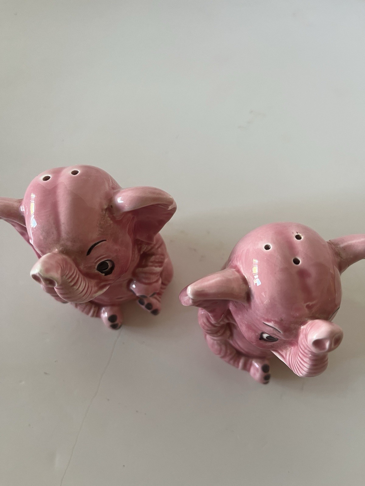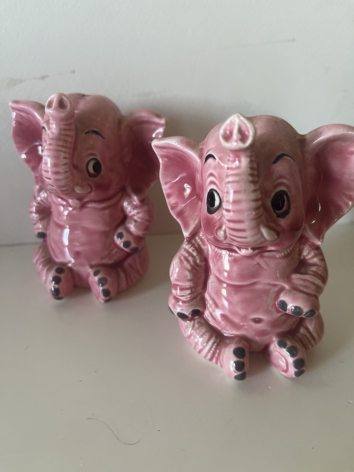 MCM/Vintage, Made In Japan, With Sticker, RARE Bright Pink “Elephant” Salt And Pepper Shaker Set In Perfect Condition..